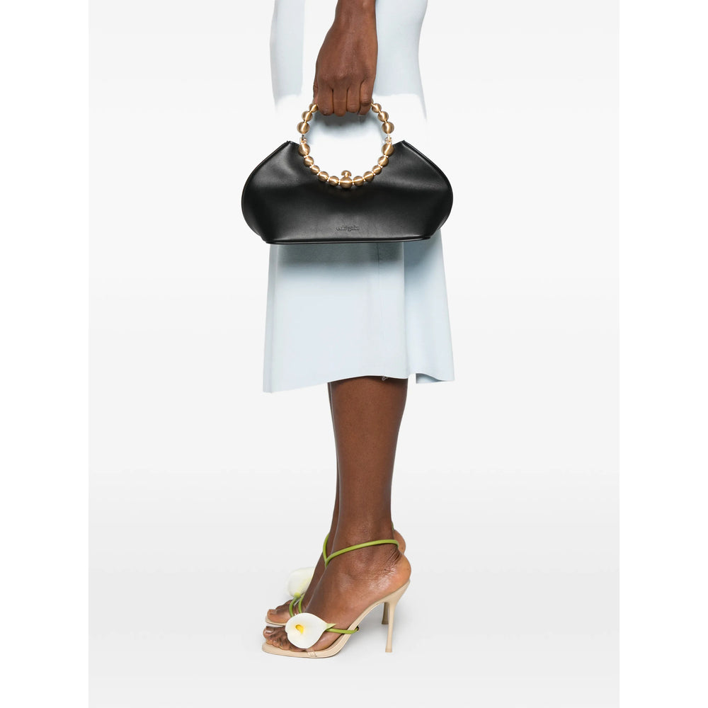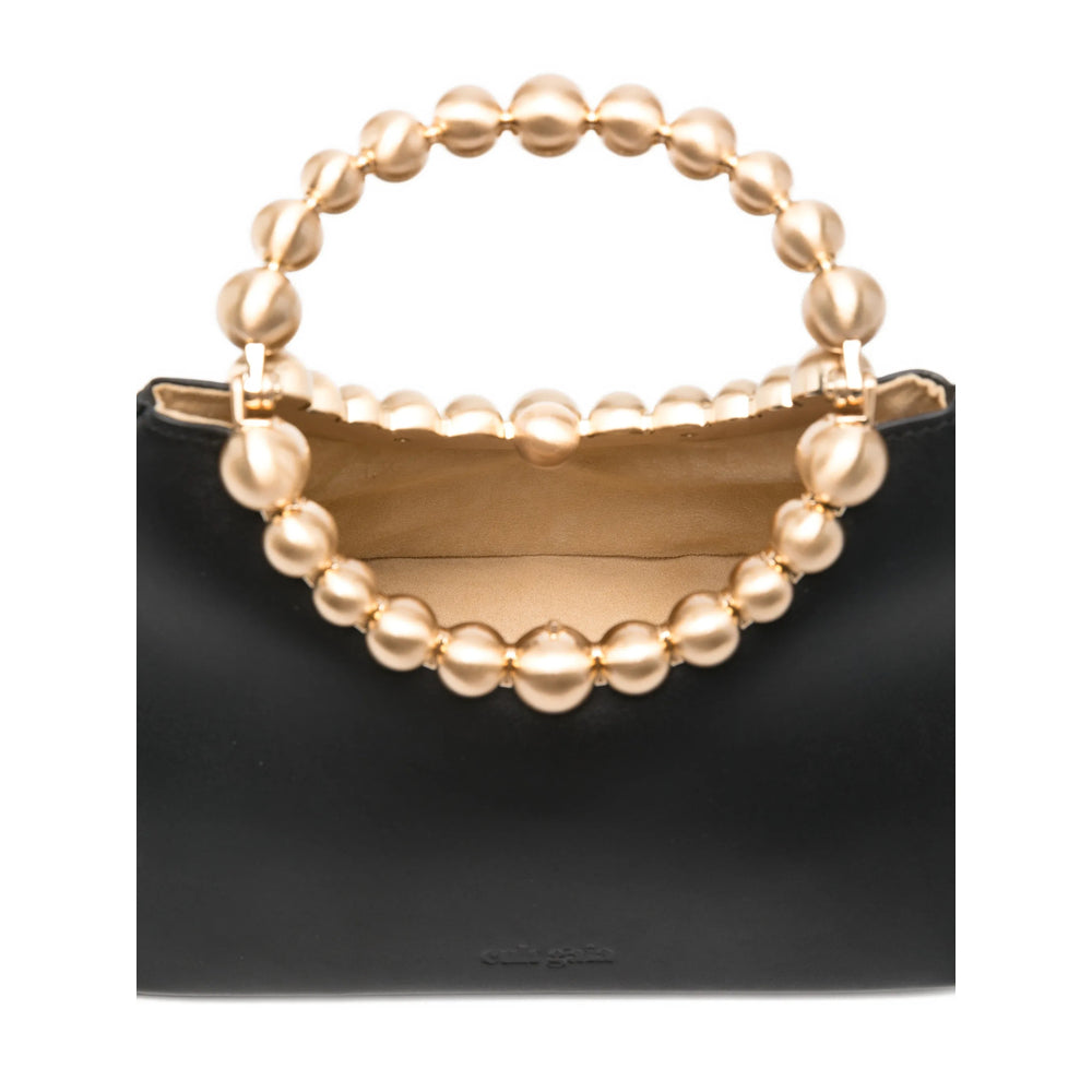 black round beaded handle top handle debossed logo structured shape This piece comes complete with a protective dust bag.