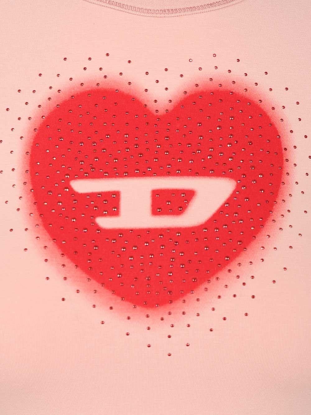 Diesel cotton T-shirt, short sleeves, crew neck, heart print on the front with brand symbol.