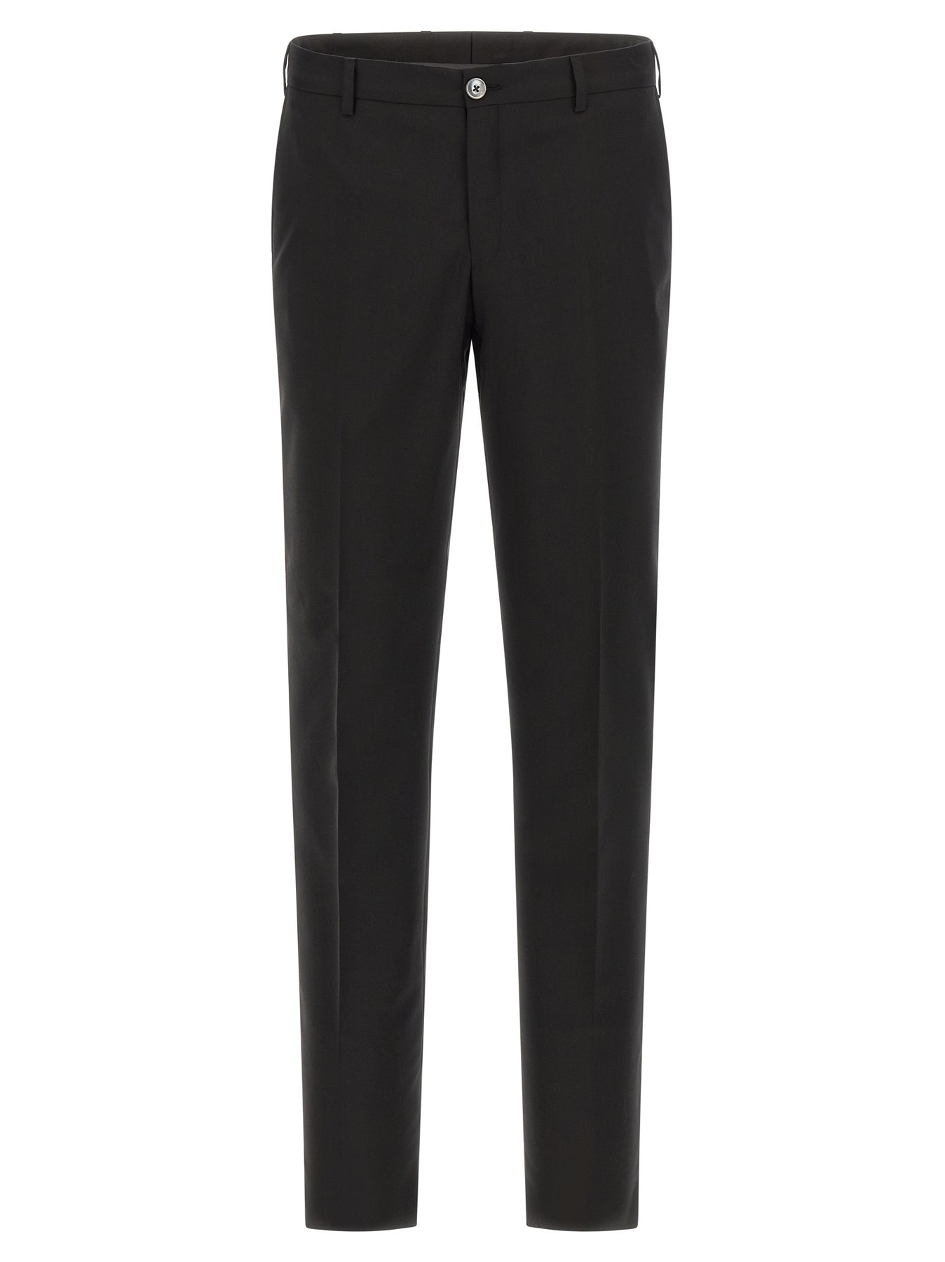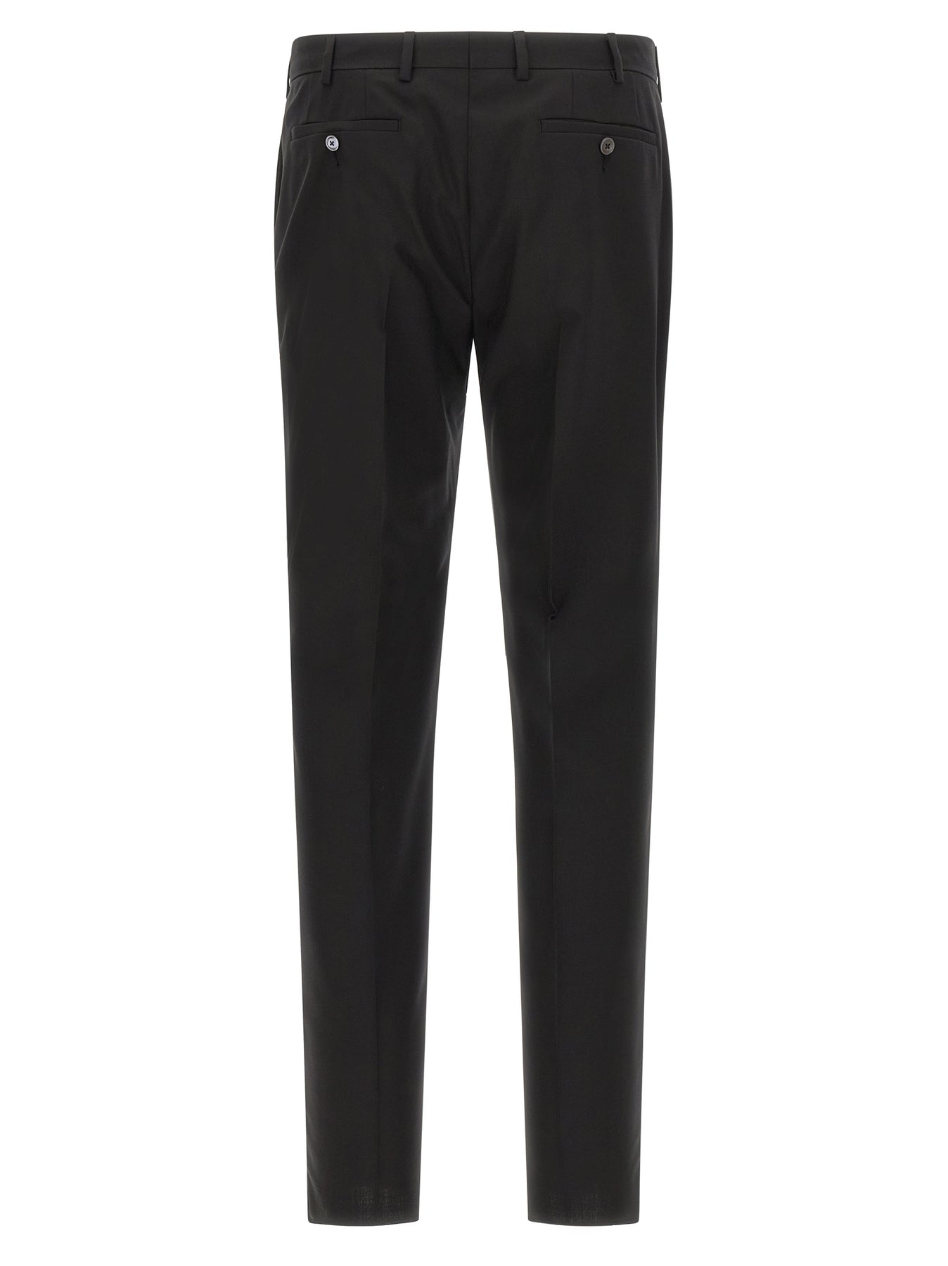 'linea Cerimonia' wool dress consisting of single-breasted blazer with single button closure, tonal satin details, shawl collar, breast pocket, patch pockets, viscose lining, two inner pockets, buttonhole cuffs, back slits and trousers with stretched pleat, front pockets americane", back welt pockets, front zip and button closure, viscose lining.