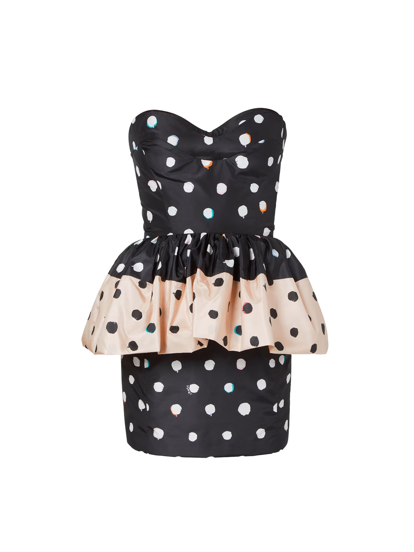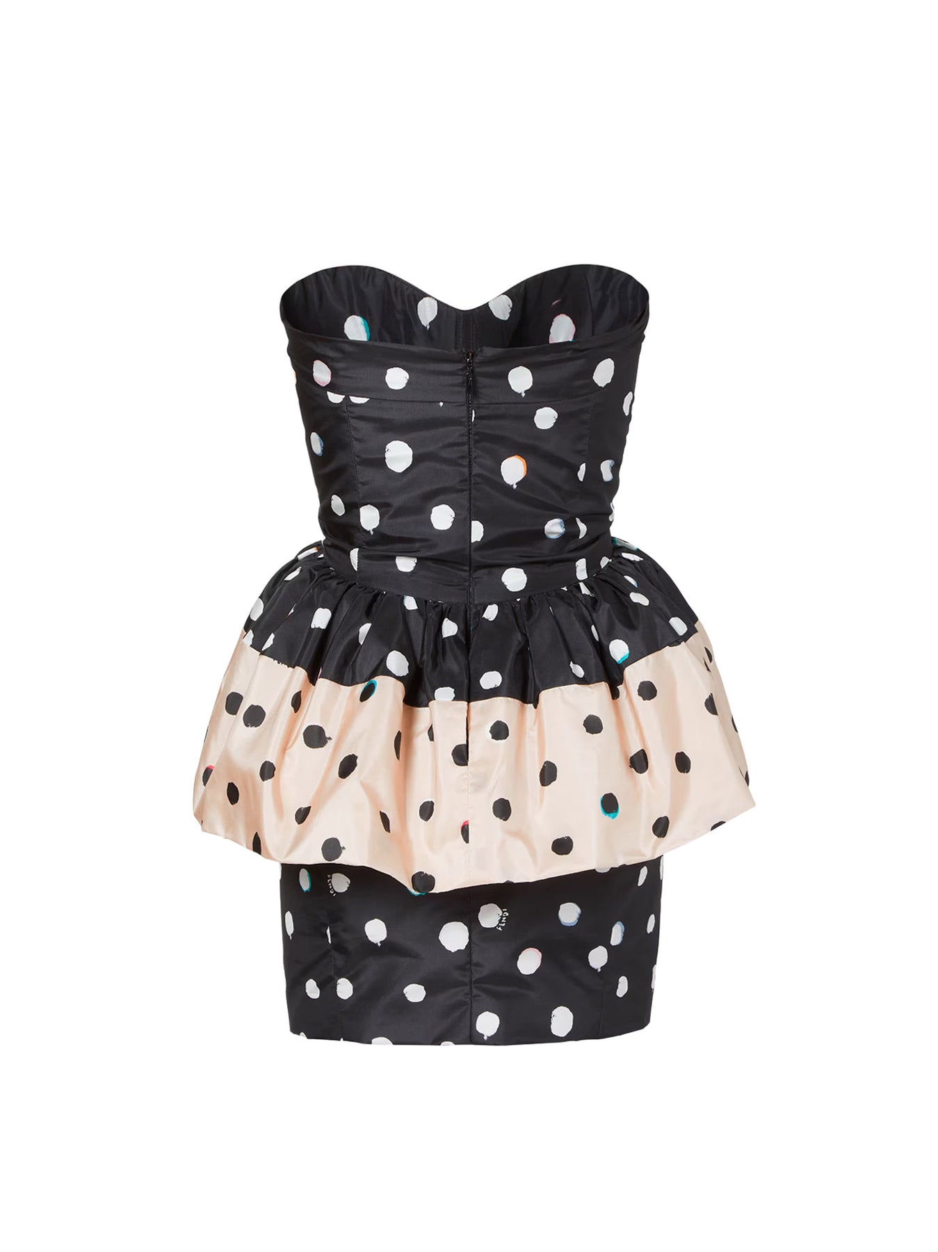 Sweetheart neckline Peplum waist All-over Polka-dots motif Back zip closure Made in Italy 100% silk Lining: 100% silk SKU: FDD509AVJQF0GME