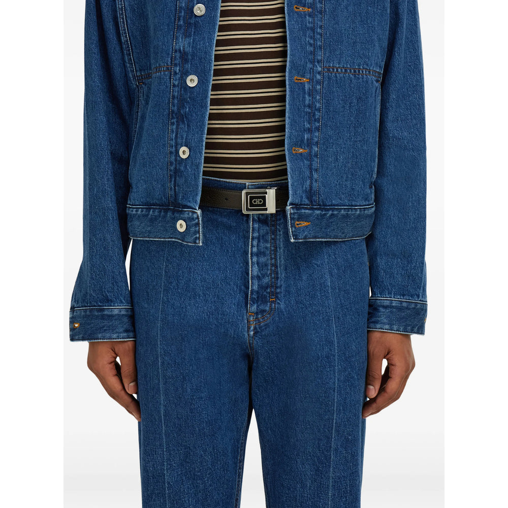 dark brown reversible grained calfskin geometric buckle enamel detail gancini detail