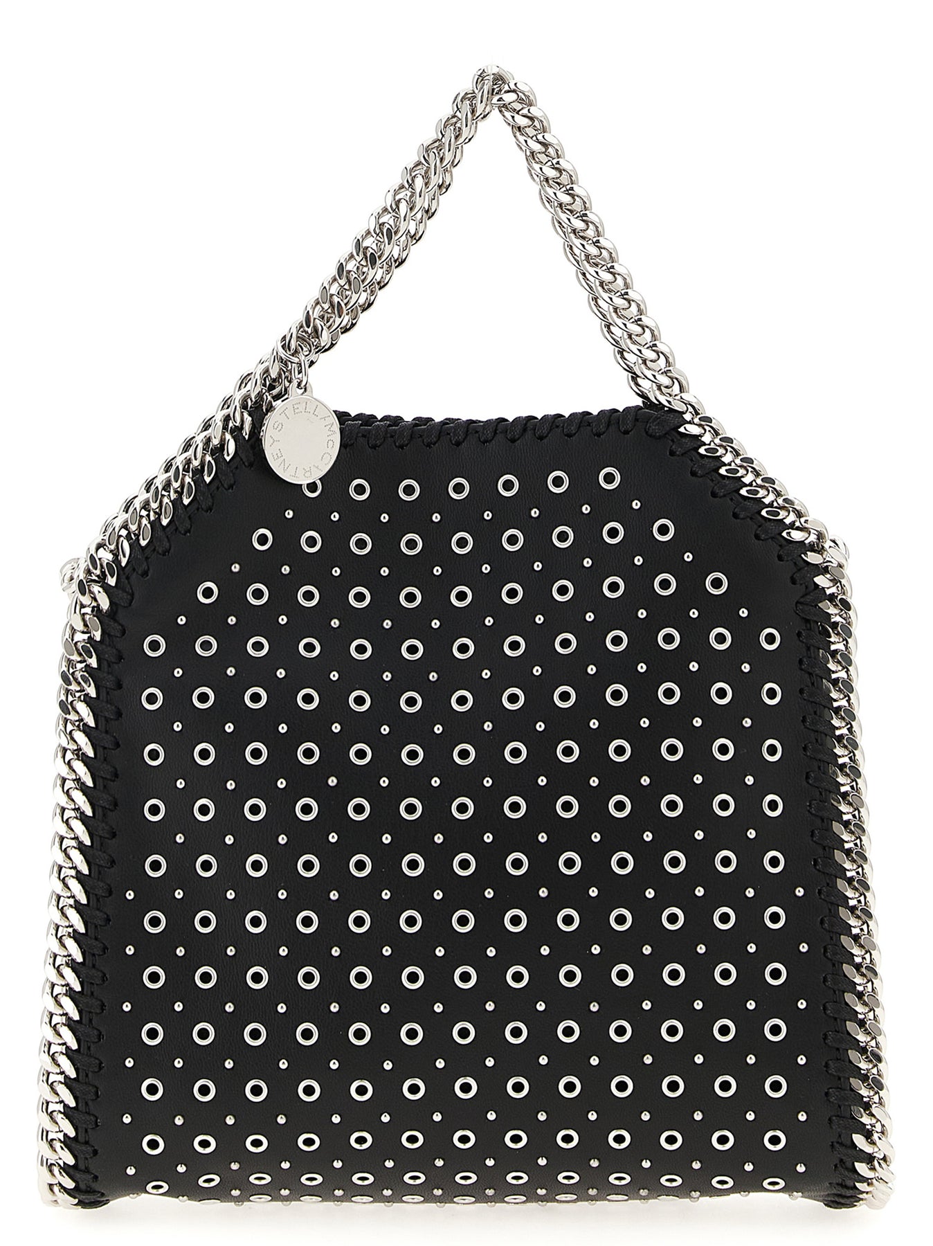 'Tiny Falabella' handbag in leather-effect fabric with all-over metal studs, diamond-effect chain, double fixed handle, magnetic closure, chain shoulder strap, medallion charm with engraved logo. SUSTAINABLE: Products that do not use leather respecting cruelty free ethics.