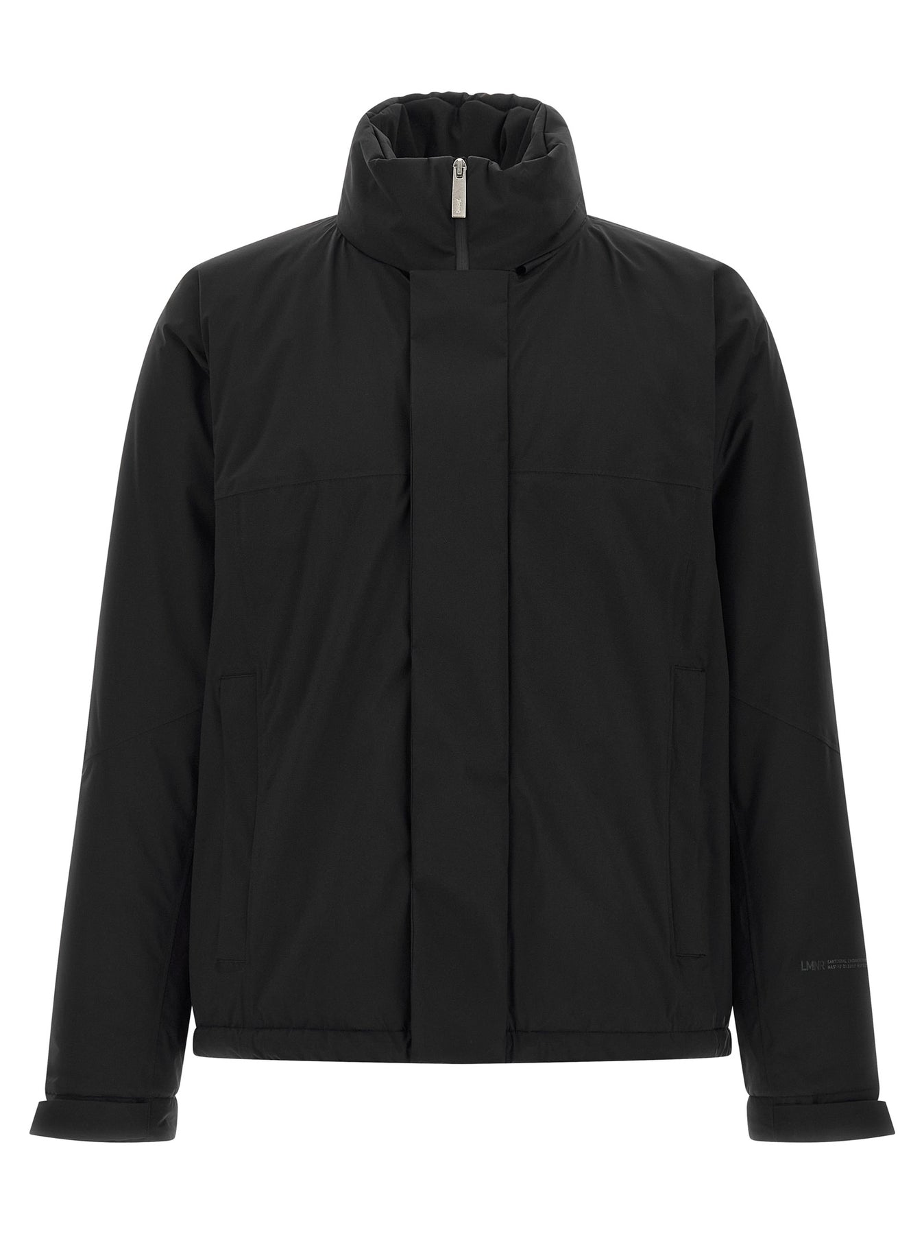 Lightly padded GORE-TEX® jacket, stand-up collar with removable hood, front zip and snap button closure, pockets, long sleeves with adjustable cuffs, drawstring at the hem, back logo patch.