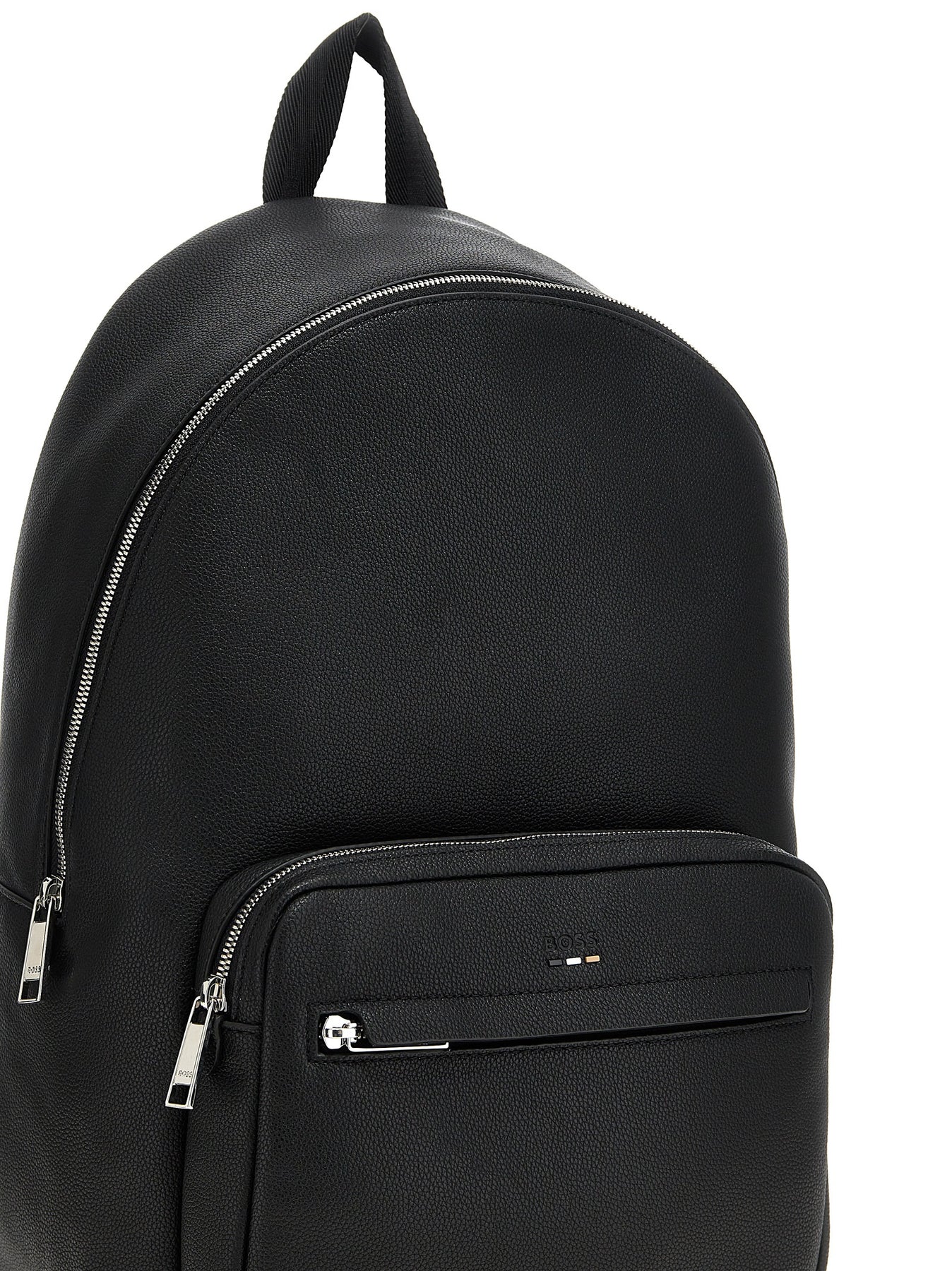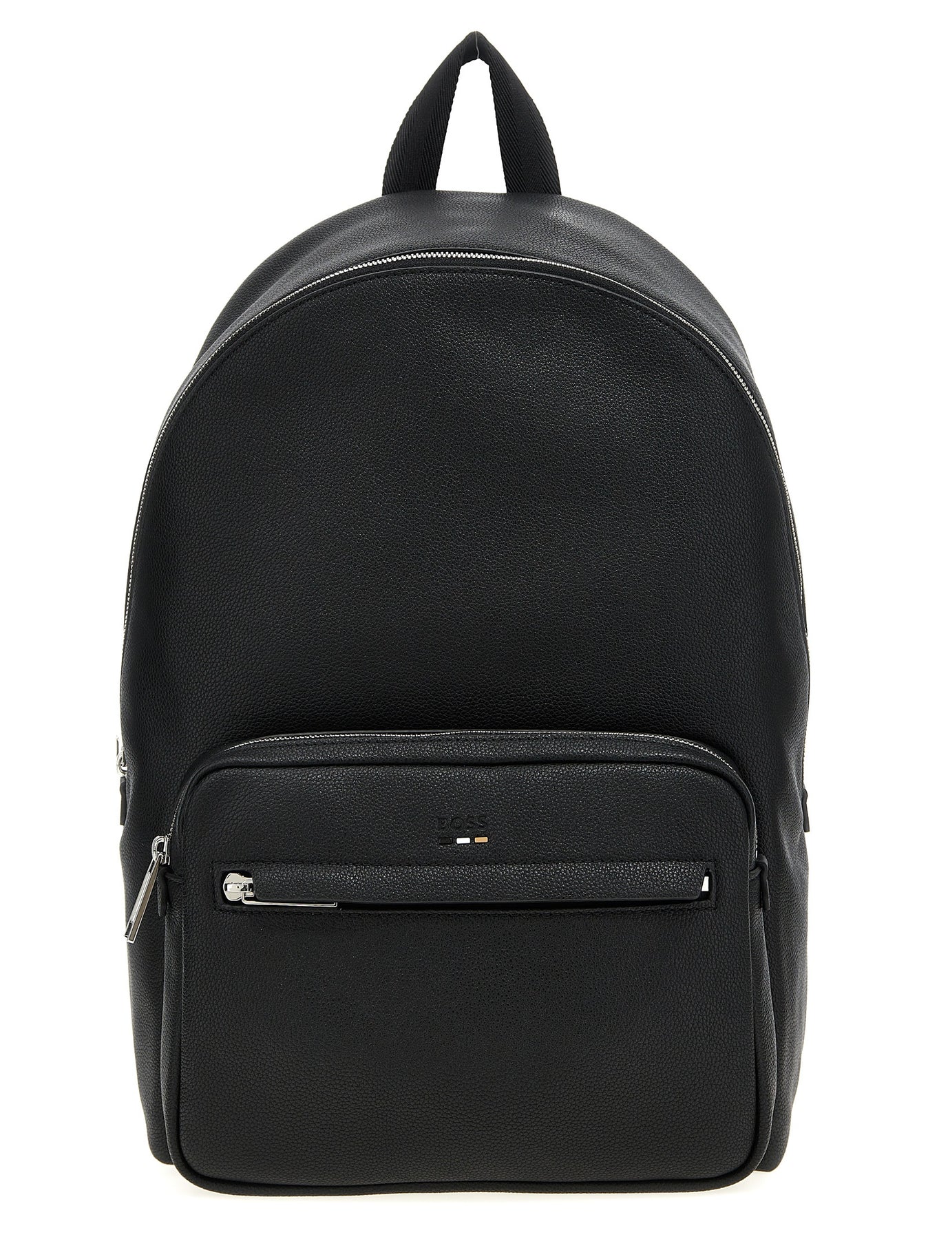 'Ray' backpack in hammered leather-effect fabric, front logo, zip closure, top handle, front zip pocket, adjustable shoulder straps, padded backrest.