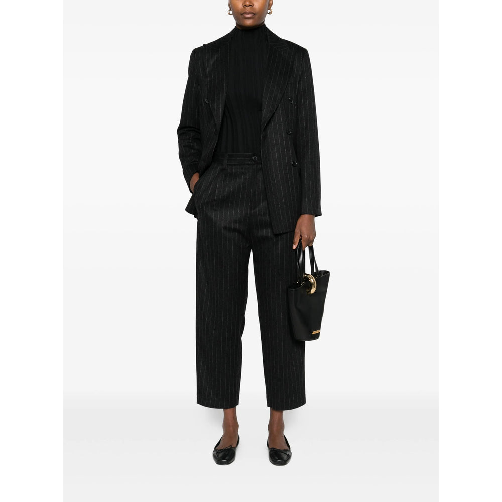 grey pinstripe pattern double-breasted fastening notched lapels welt pockets long sleeves
