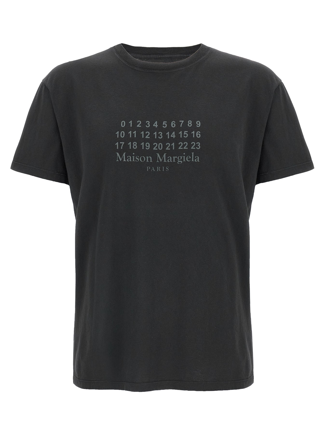 Flamed cotton T-shirt with tone-on-tone 'Numeric signature MM6' print on the front, crew neck, short sleeves, 'Four stitches' at the back.