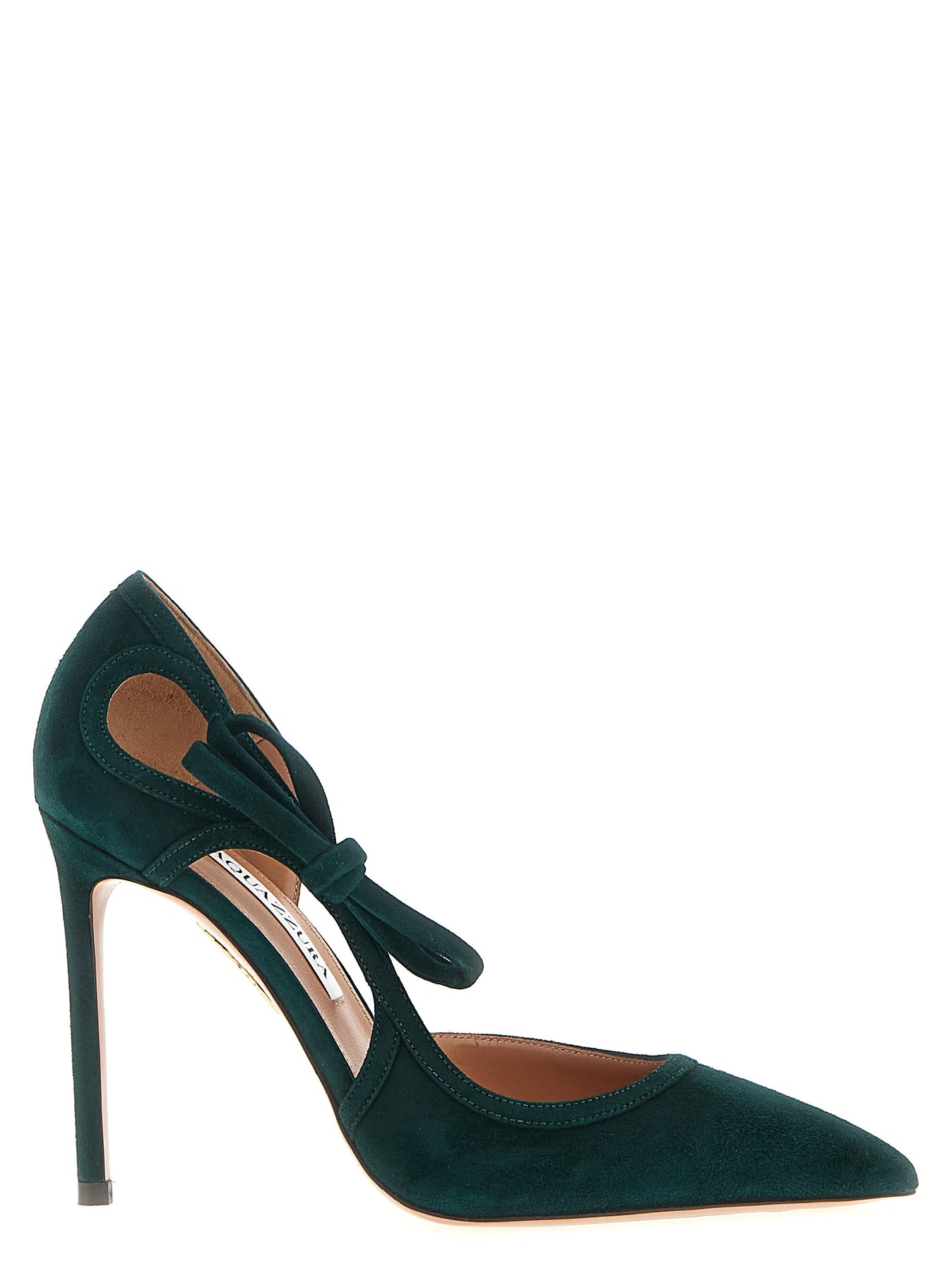 'Soave' suede pointed pumps with side cut-outs with outer bow detail, padded leather insole, stiletto heel, leather sole.