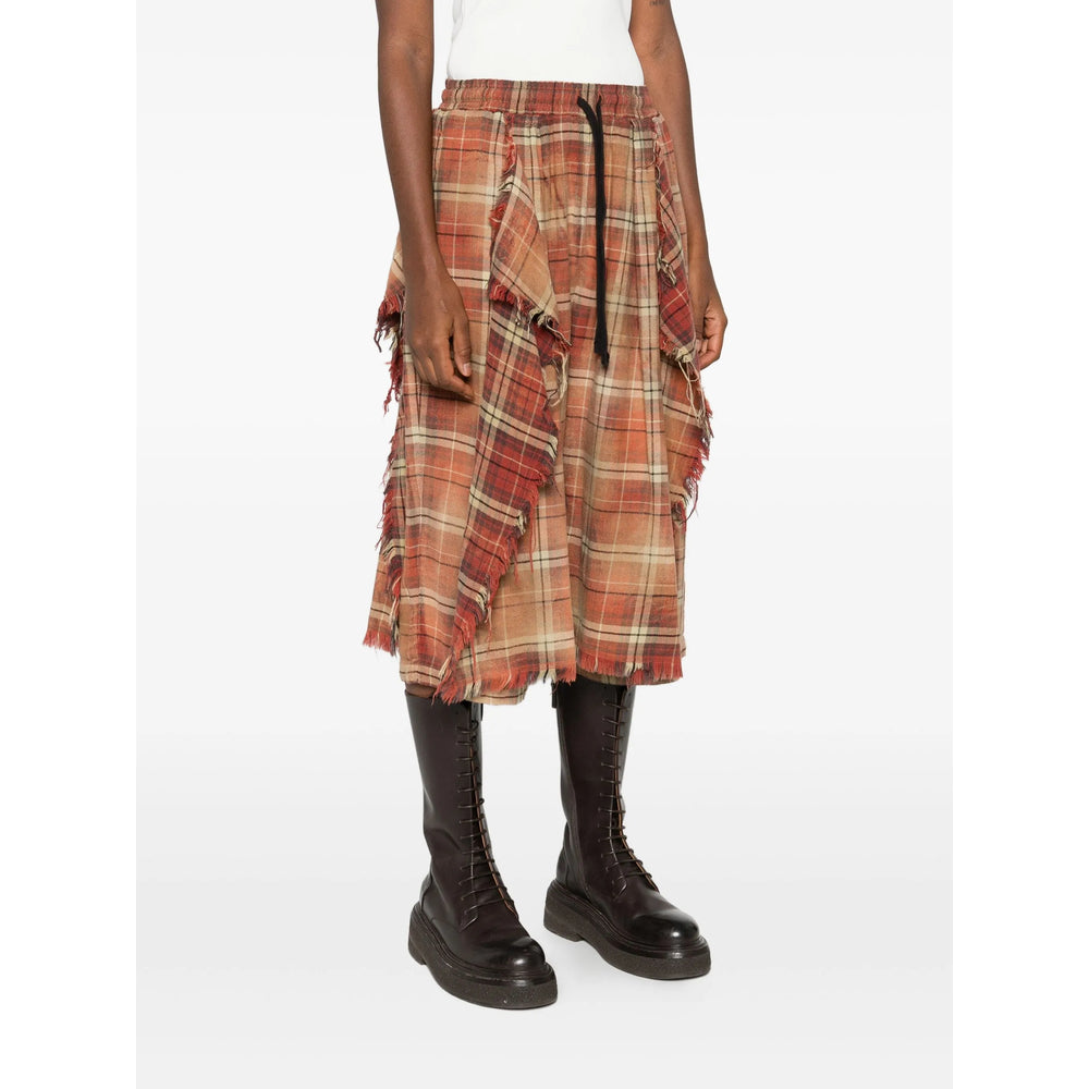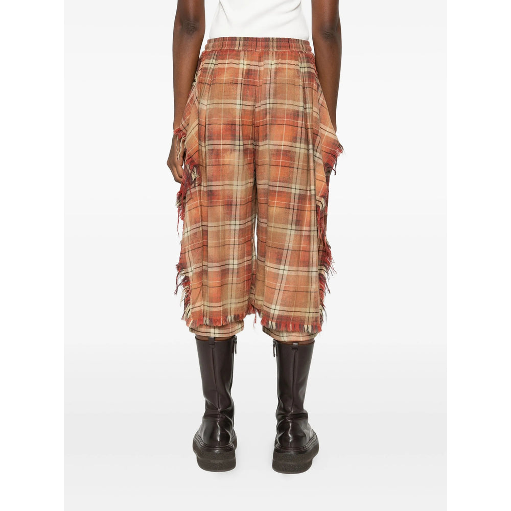 orange checked pattern frayed edges drawstring fastening side pockets relaxed fit