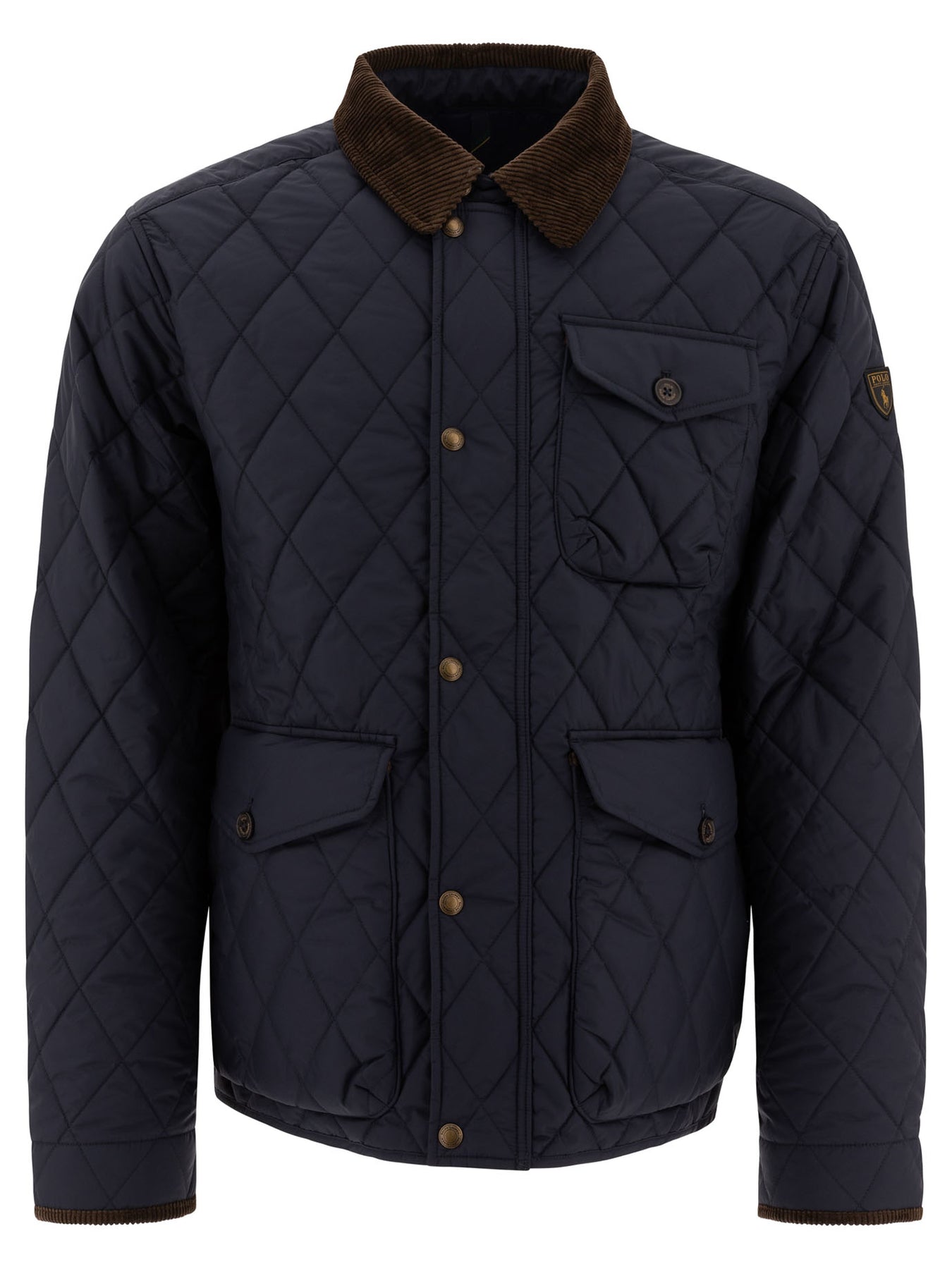 Polo Ralph Lauren "Beaton" jacket, constructed with water-repellent taffeta and full padding. Construction includes lined vent, double back slit with snap closure, long sleeves with snap-adjustable cuffs and metal underarm ventilation eyelets. Features straight corduroy collar with pull tab and center zipper covered by wind flap with custom metal snaps. || - Embroidered Pony logo on left sleeve - Brand-engraved snaps and buttons - Corduroy collar with tab details - Three outside pockets with snap closures - Two inside pockets - Regular fit