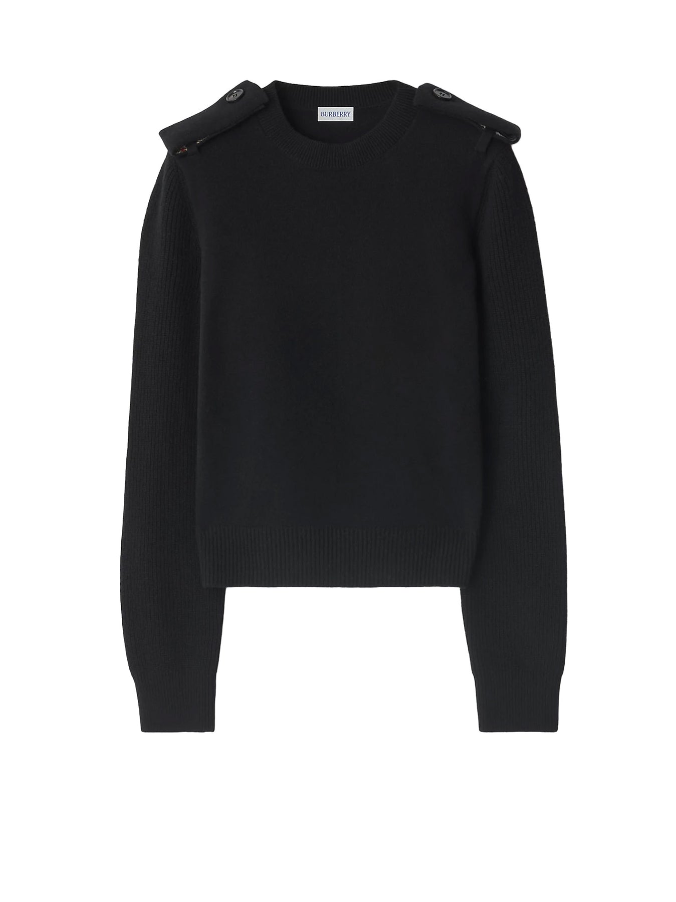 Crew-neck Long sleeves with cuffs Button detail on the shoulders Made in Italy 63% wool, 24% cashmere, 12% polyamide, 1% elastane SKU: 8111477A1189
