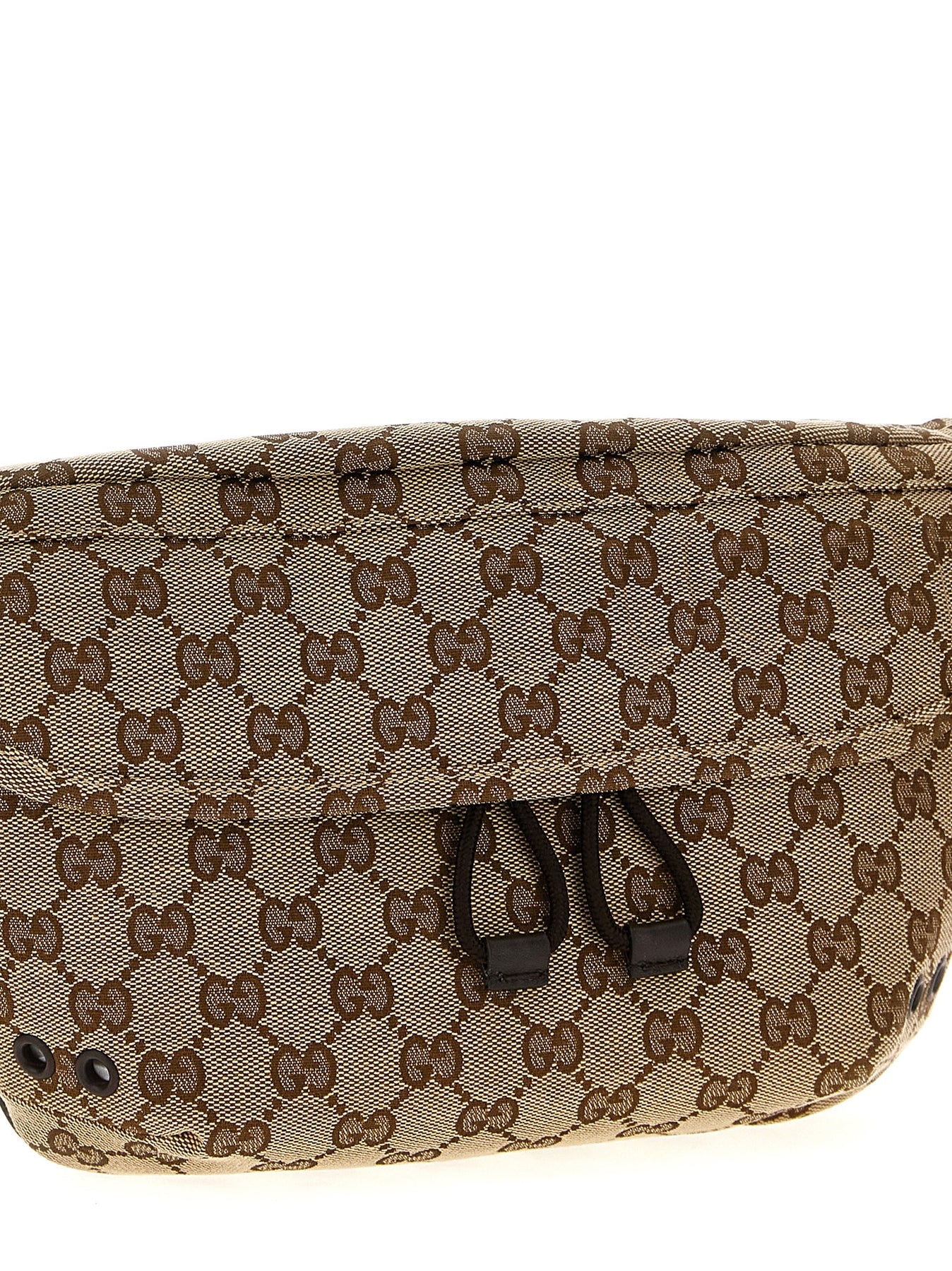 Original GG' small fabric fanny pack, web detail, zip and fidlock closure, adjustable shoulder strap, embossed logo.