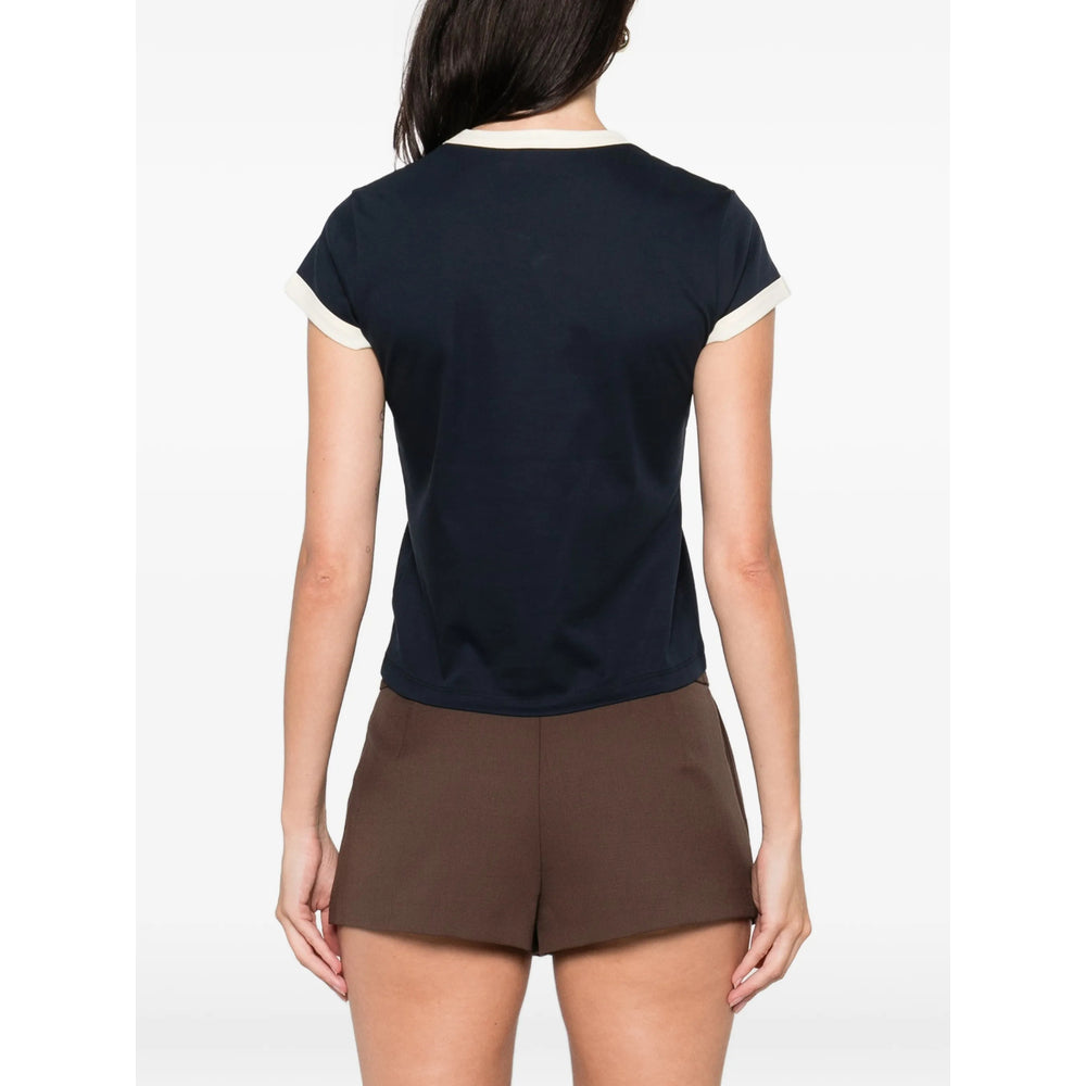 blue ringer trim embroidered logo round neck short sleeves