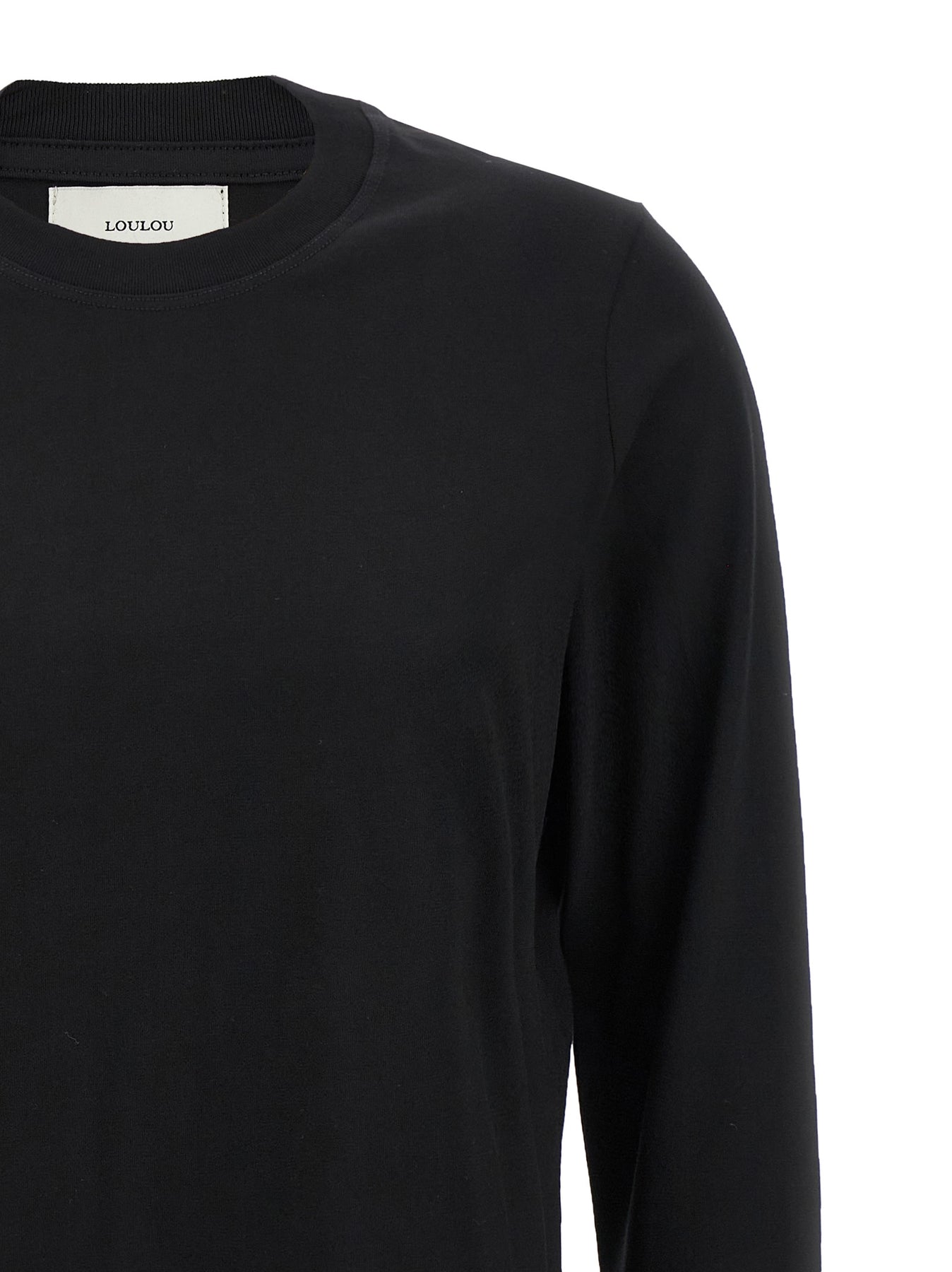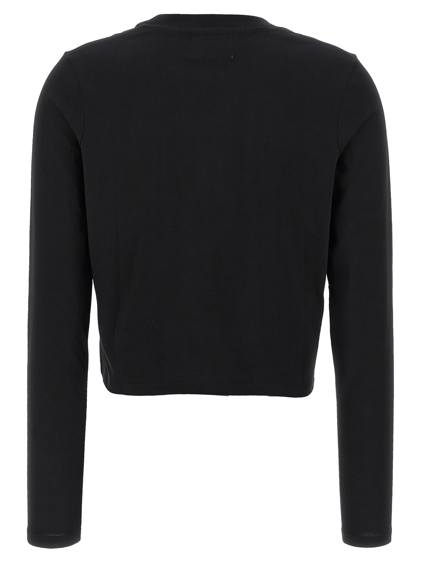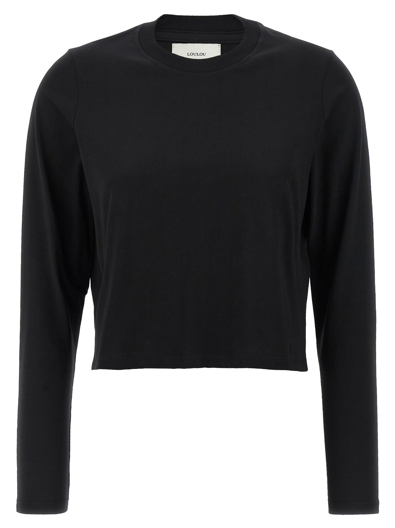 Supima cotton 'Masal' T-shirt with tone-on-tone logo embroidery on the front, crop model, crew neck, long sleeves.