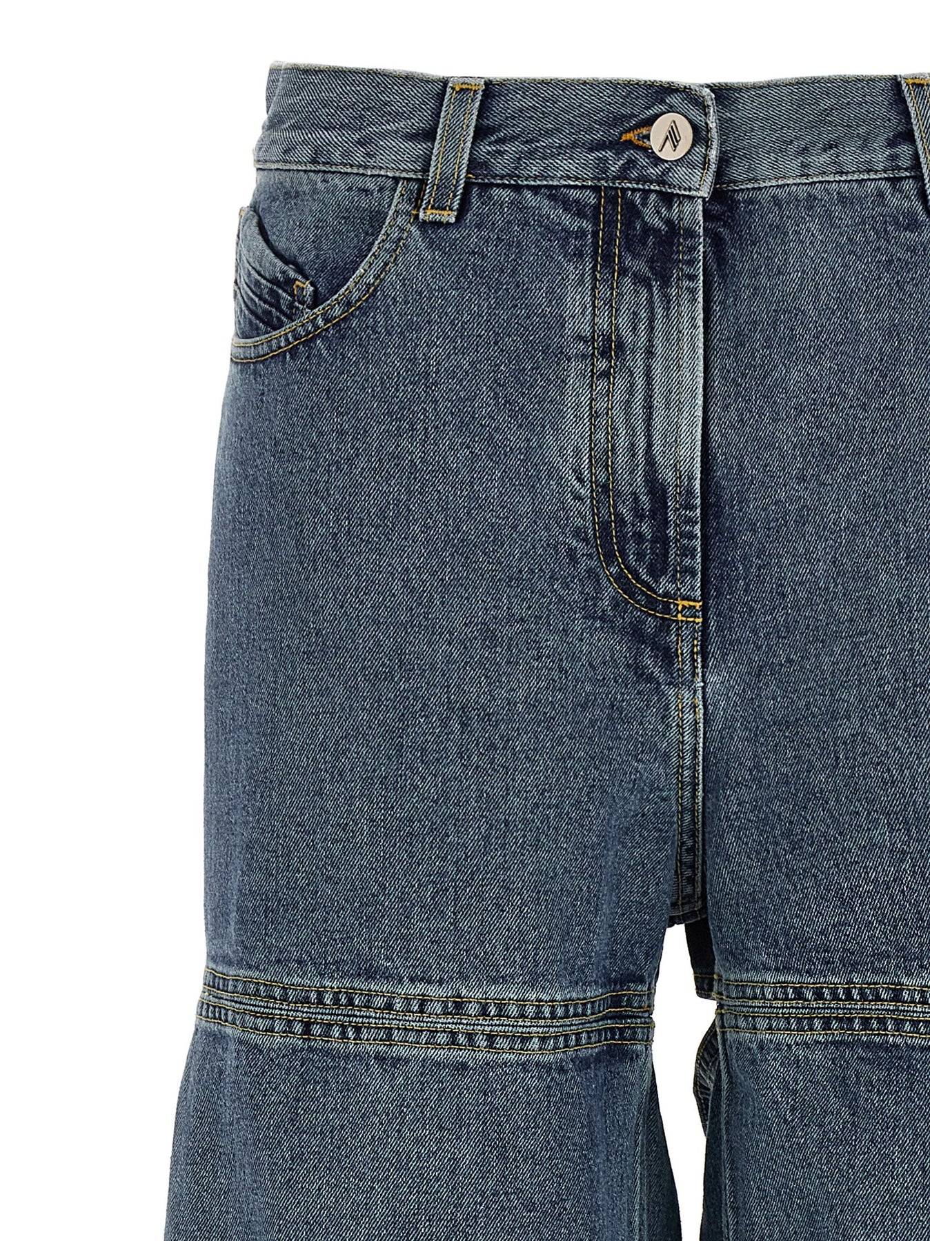 Washed cotton denim jeans, low crotch, back cut-out details, wide and straight leg, front zip and button closure, five pockets, leather logo tag.