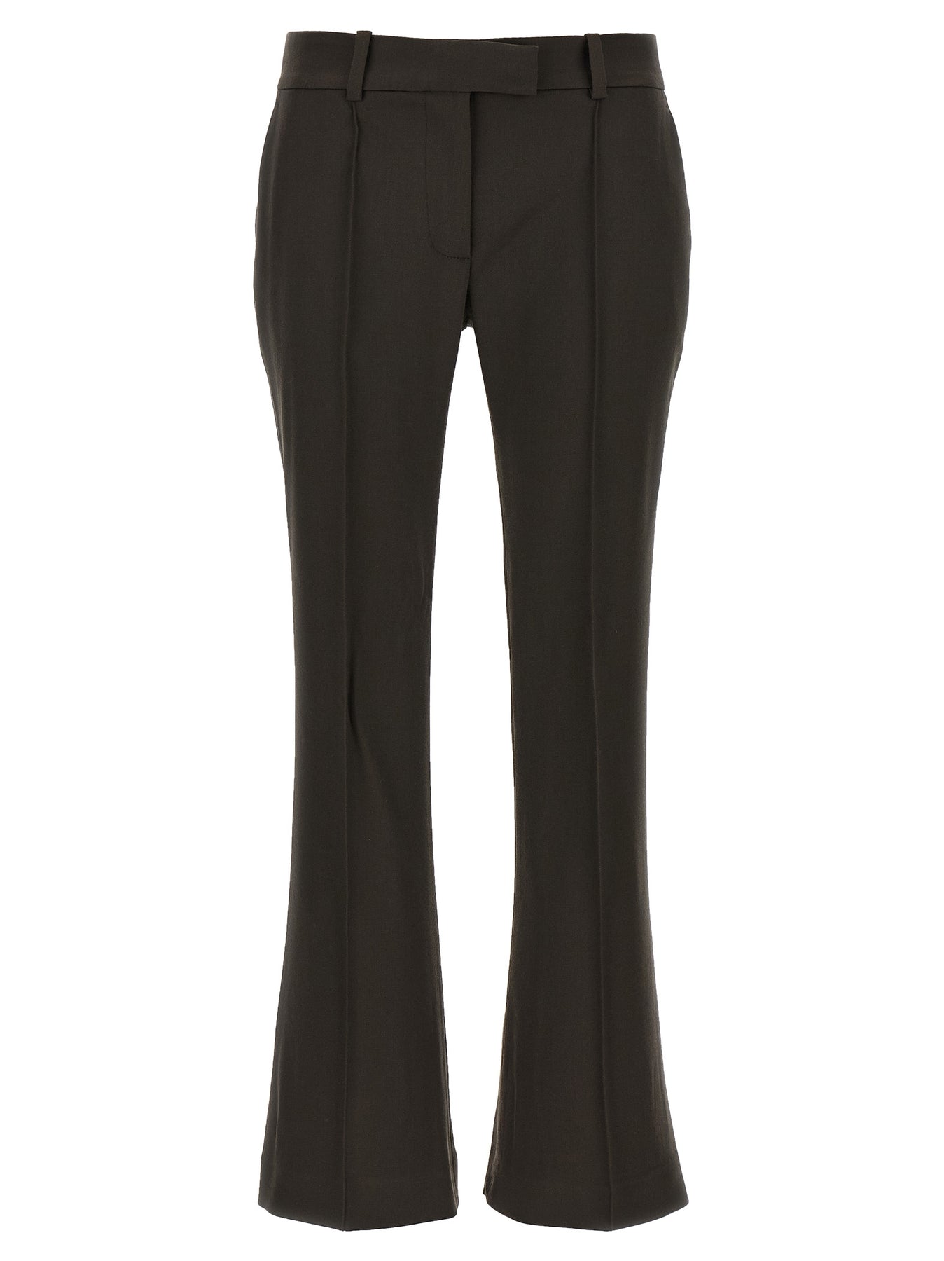 Stretch wool gabardine trousers, crop model with flared leg, stitching and zip closure, hook and buttons on the front, pockets.