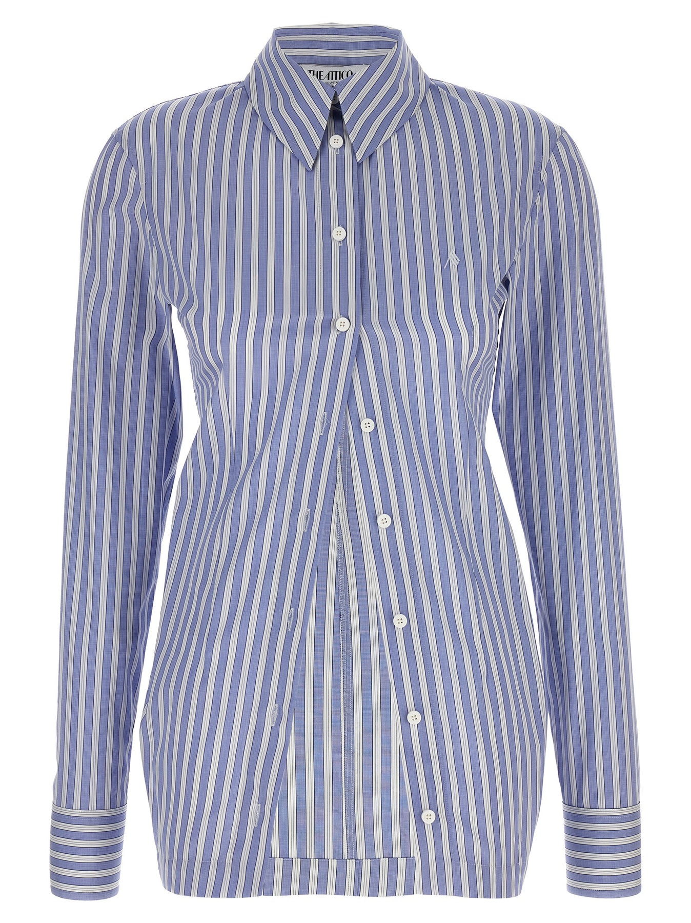 Striped cotton shirt, classic collar, slightly flared design, front logo embroidery, long cuffed sleeves.