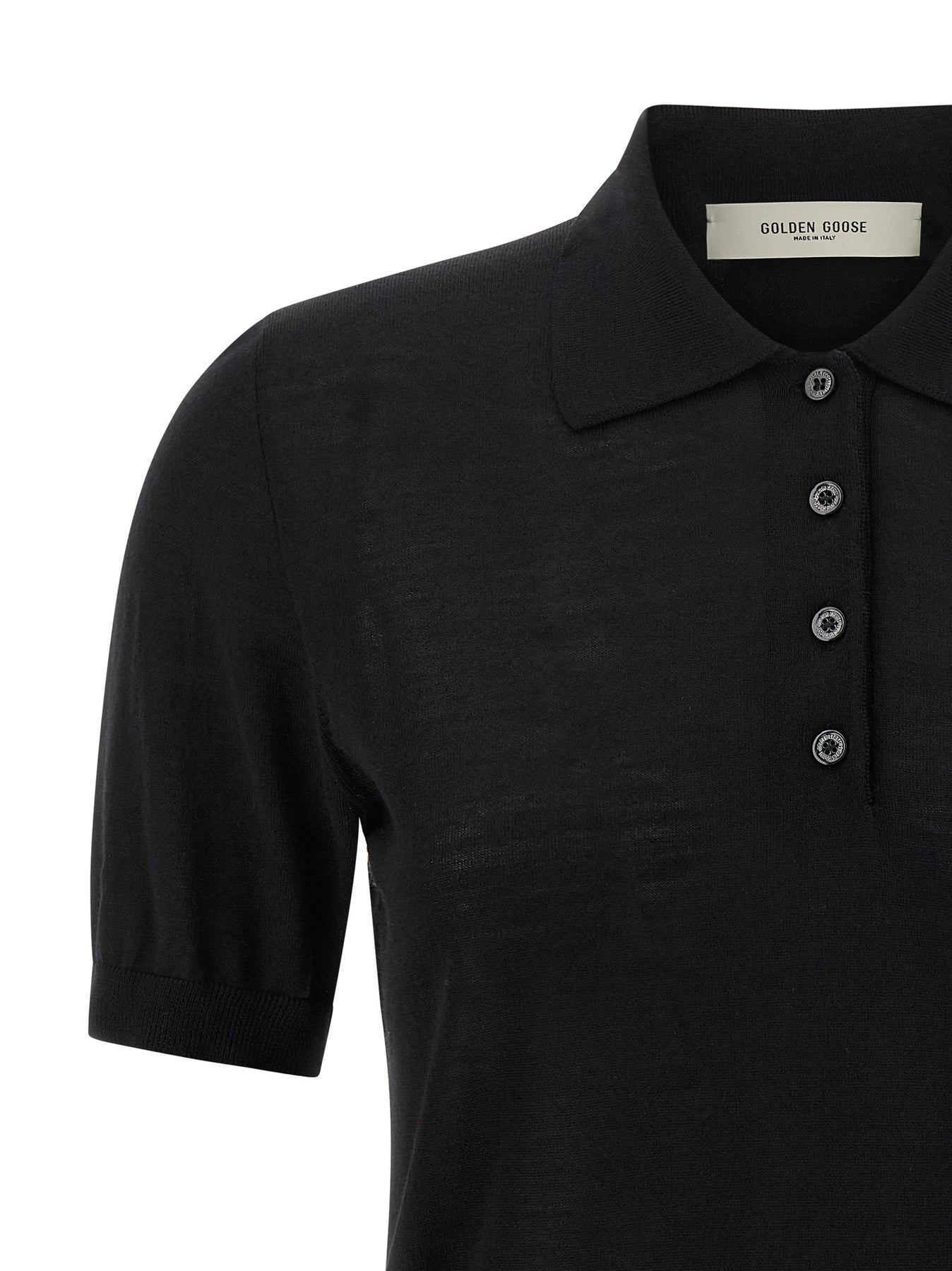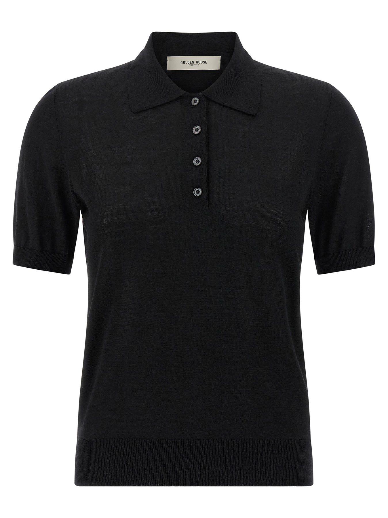 'Glenda' polo shirt in light virgin wool with collar and buttons, short sleeves.