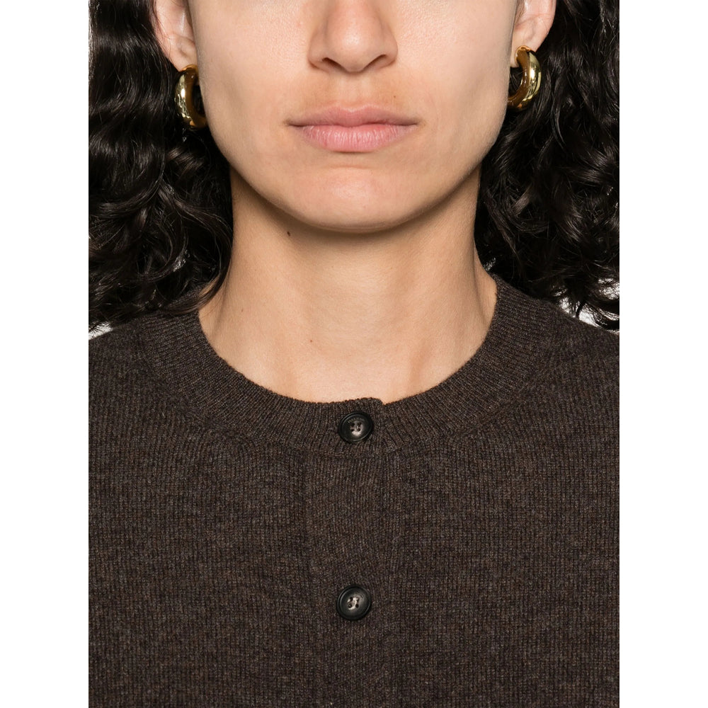 chocolate brown front button fastening knitted construction round neck long sleeves