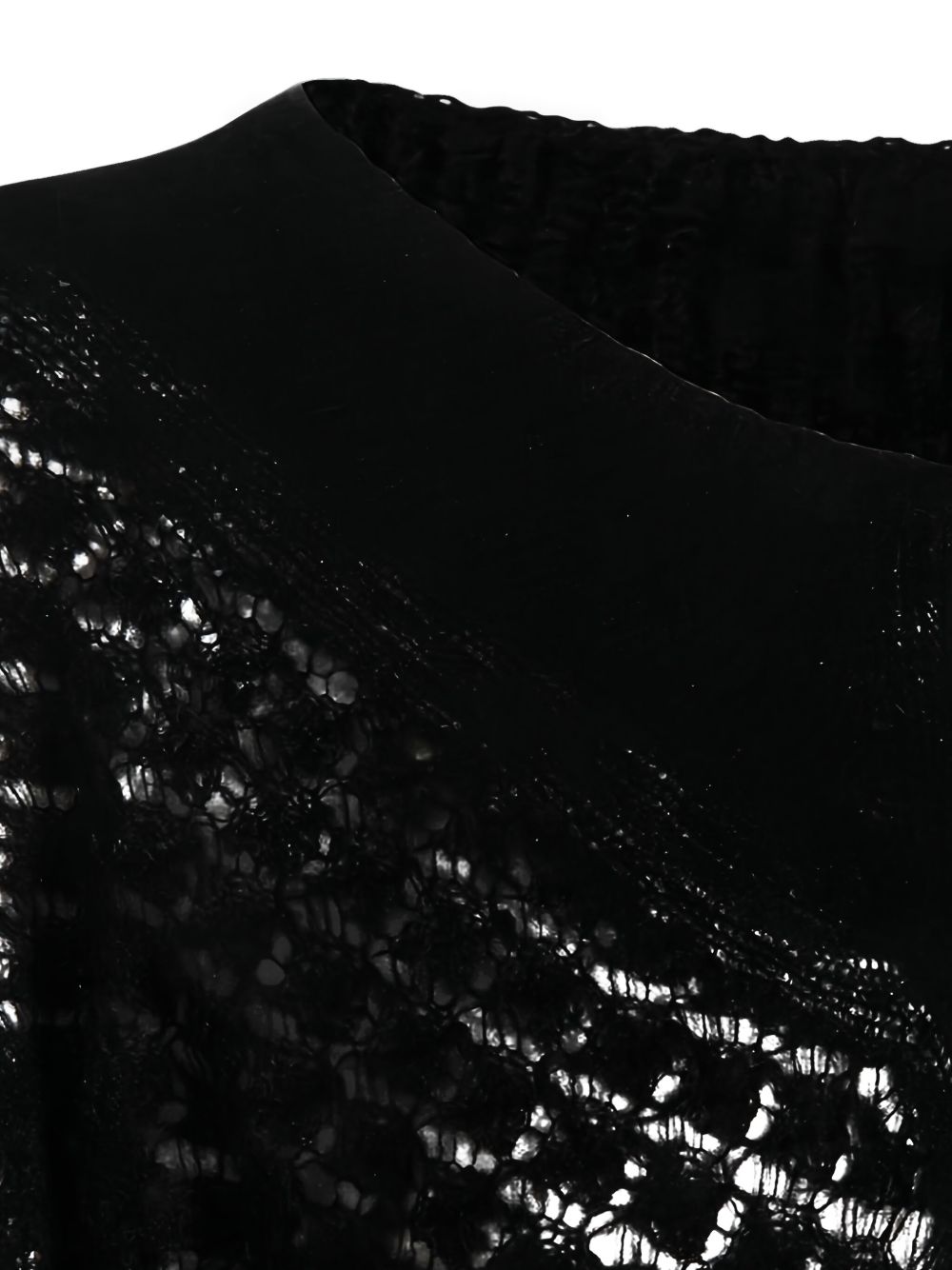 black open knit ruffled cuffs long sleeves round neck