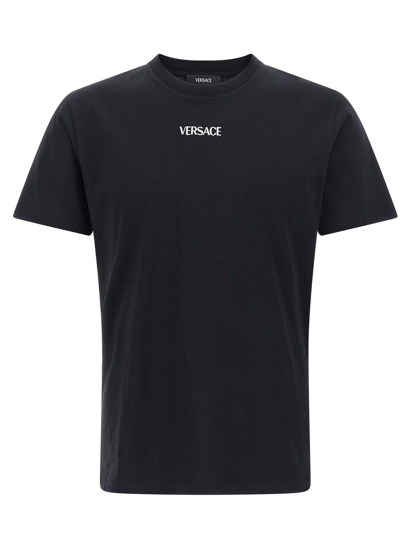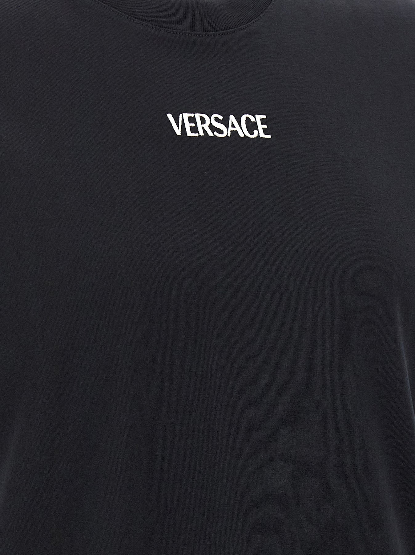 Cotton jersey T-shirt with front 'Versace Logo' embroidery, crew neck, short sleeves.