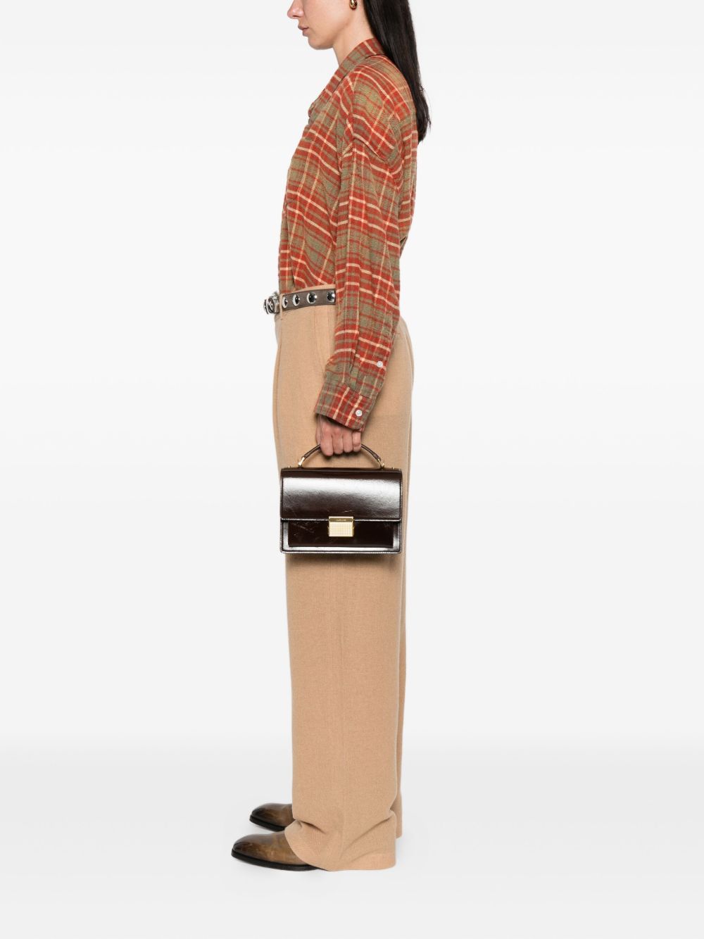 brown calf leather single top handle gold-tone clasp fastening logo print main compartment