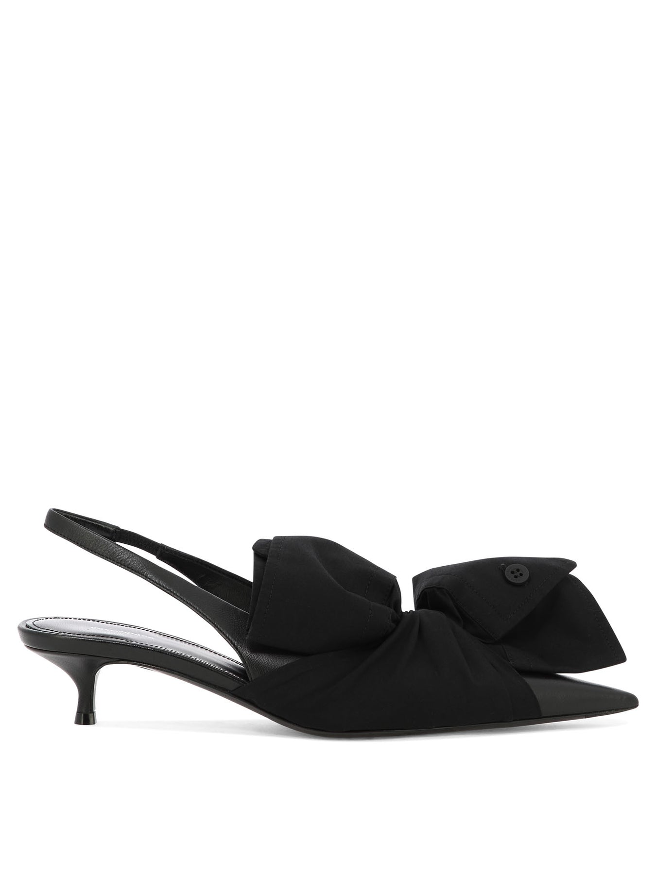 Balenciaga's "Knife Chemise 40 mm" pumps represent a fusion of contemporary elegance and sartorial detailing. Designed for the woman who appreciates the combination of innovative design and comfort, these shoes stand out for their iconic style. The special workmanship of the knotted shirt sleeves on the upper and the refined Knife heel make them particularly suitable for occasions that call for an understated touch of class. || - In soft nappa leather and cotton poplin - Décolleté with elongated toe - Knotted shirt sleeves on the upper - Environmentally sustainable product