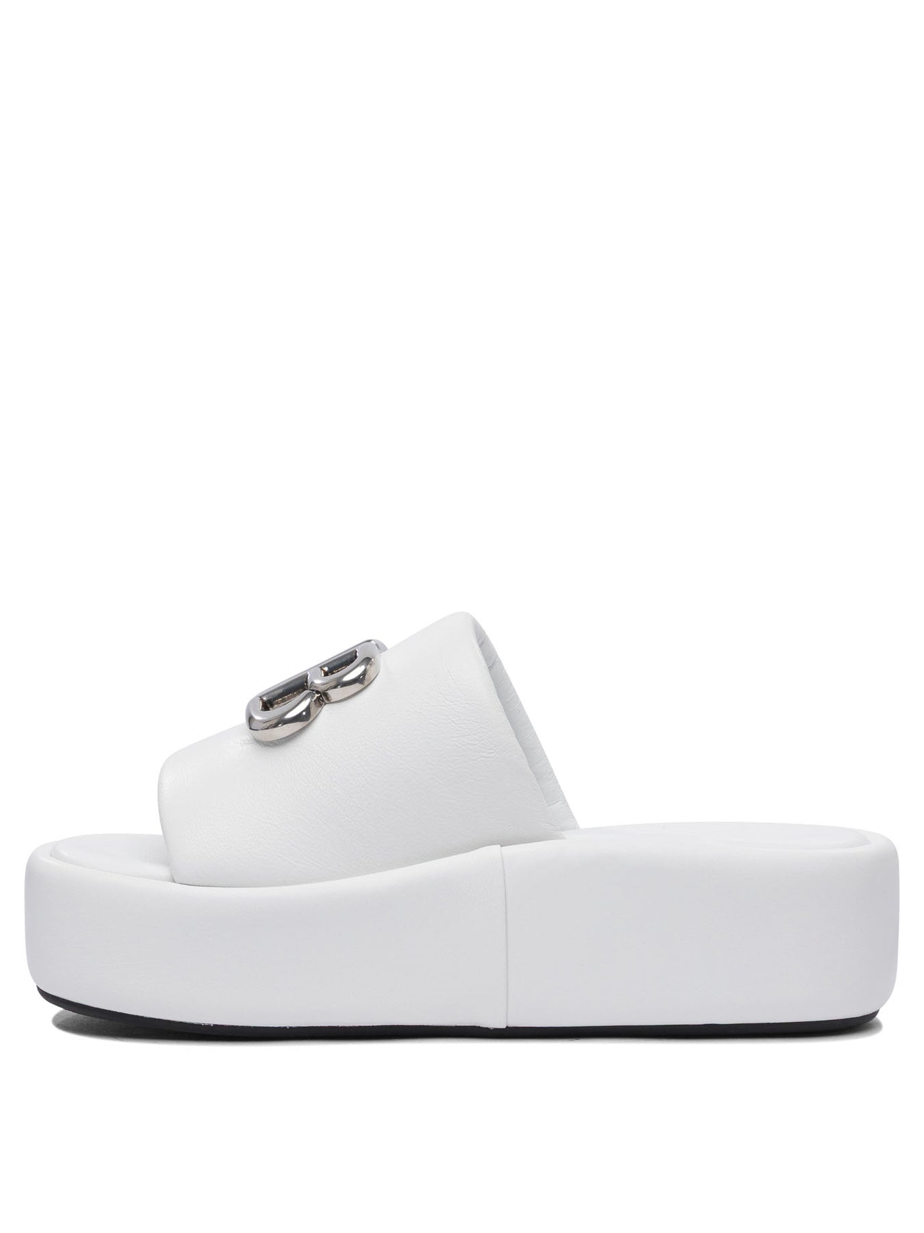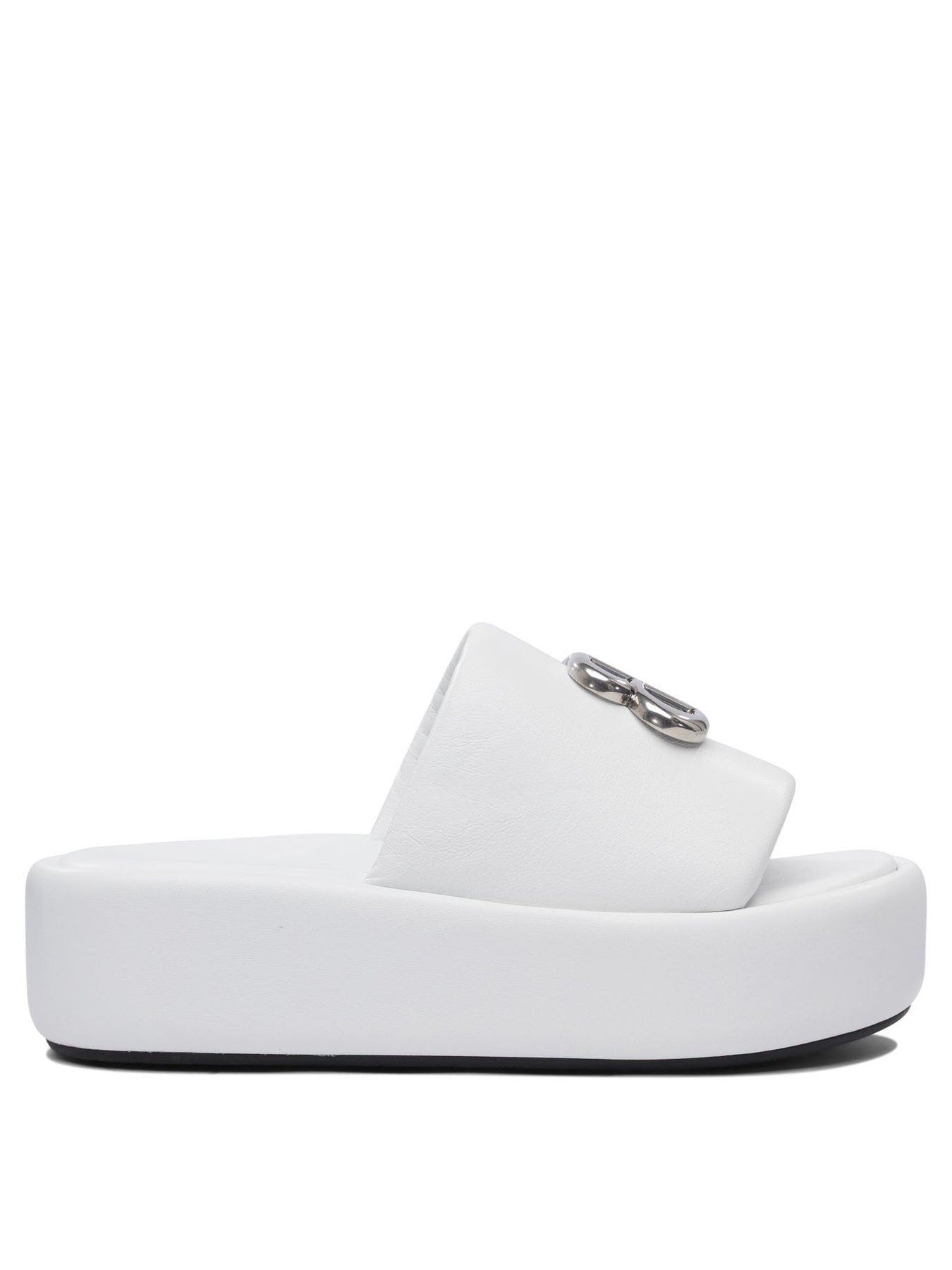 Balenciaga's "Rise" slides represent the epitome of elegance blended with comfort. This creation perfectly expresses contemporary luxury, thanks to its refined aesthetic and the unparalleled quality of the materials used. Perfect for a woman who seeks elegance in simplicity, these slides add a distinctive touch to any occasion. || - Lambskin - Smooth grain - Round toe - Platform sole - BB logo plaque || The gracefulness of the "Rise" slides is ideal for pairing with looks that play with volume and texture. Imagine them with soft, long dresses that flutter lightly in step, perfect for those who love an airy, feminine style. Pair it with minimal garments that enhance the silhouette with moderate details, while the BB logo plaque becomes the focus of the ensemble. A symbol of distinctive personality, this shoe is easily adapted to both elegant urban settings and informal events.