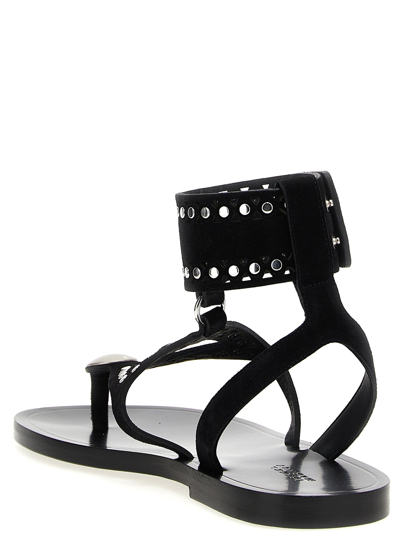Edil' suede sandals with cut-out details and all-over stud details, flip-flop style, adjustable strap with ankle snap buttons, leather sole.