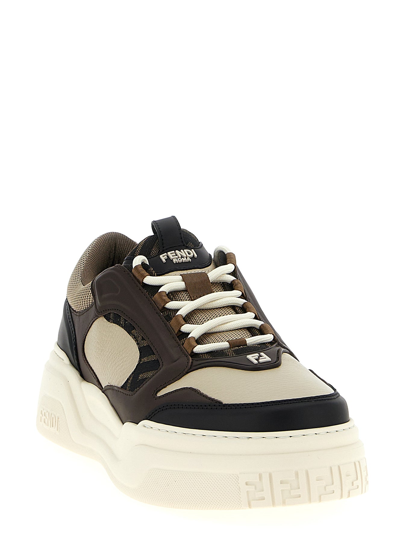 'Force' leather sneakers with embossed front logo, FF jacquard inserts, lace-up closure, rubber sole with embossed 'FF' pattern.