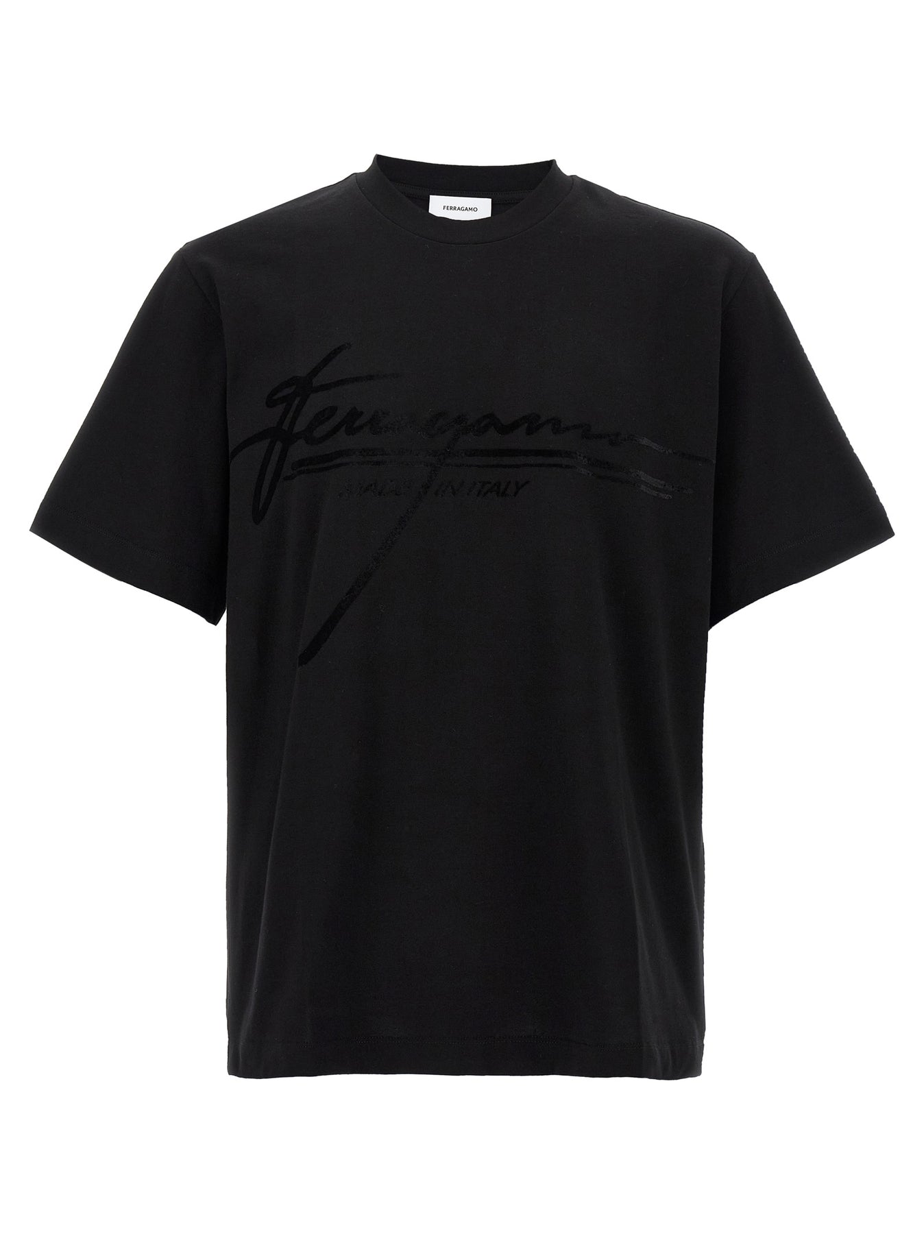Compact jersey T-shirt, with tone-on-tone flocked 'Firma' print on the front, crew neck, and short sleeves.