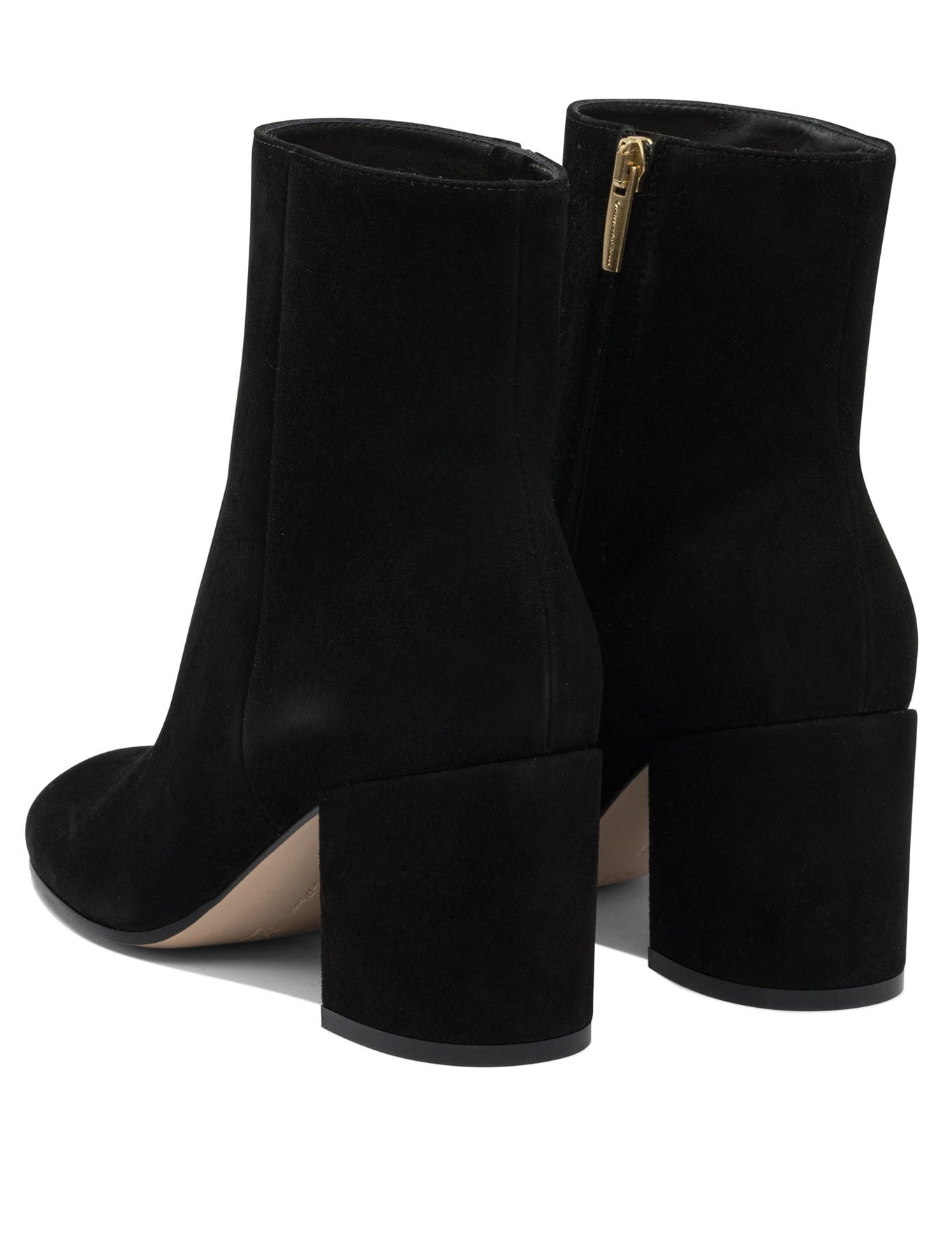Gianvito Rossi "Joelle 70 mm" zippered ankle boots, made of soft suede, feature a snug fit that follows the line of the foot. The upper structure is defined by the rounded toe and internal zipper closure for a functional fit. The block heel contributes stability, while the handcrafted construction focuses on selected materials and exposed details. || - Suede - Rounded toe - Inside zipper closure - Block heel - Leather lining and insole - Leather sole - Handmade