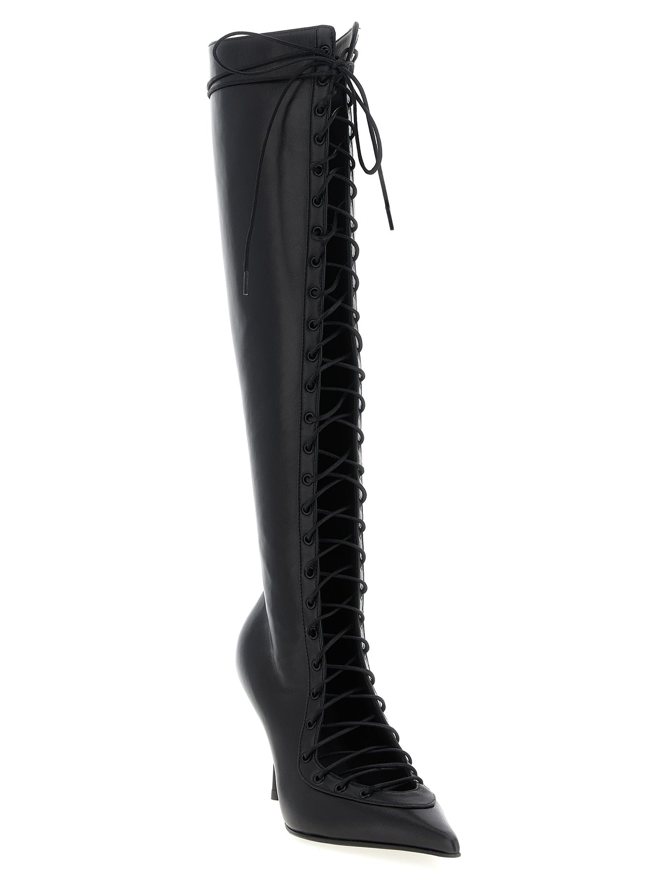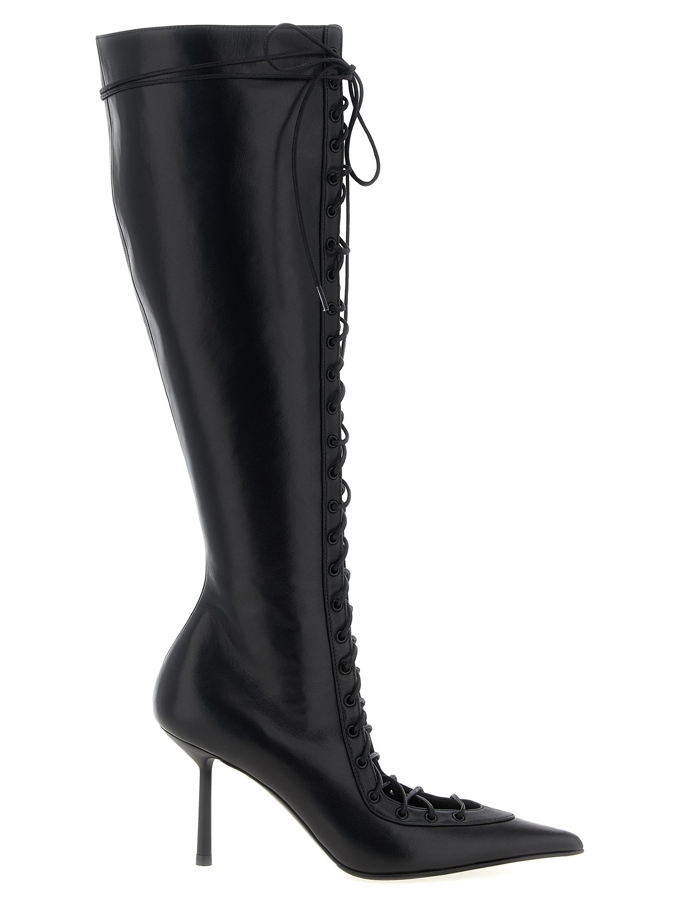 'Colette' leather boots, pointed model, lace closure and side zip, heel.