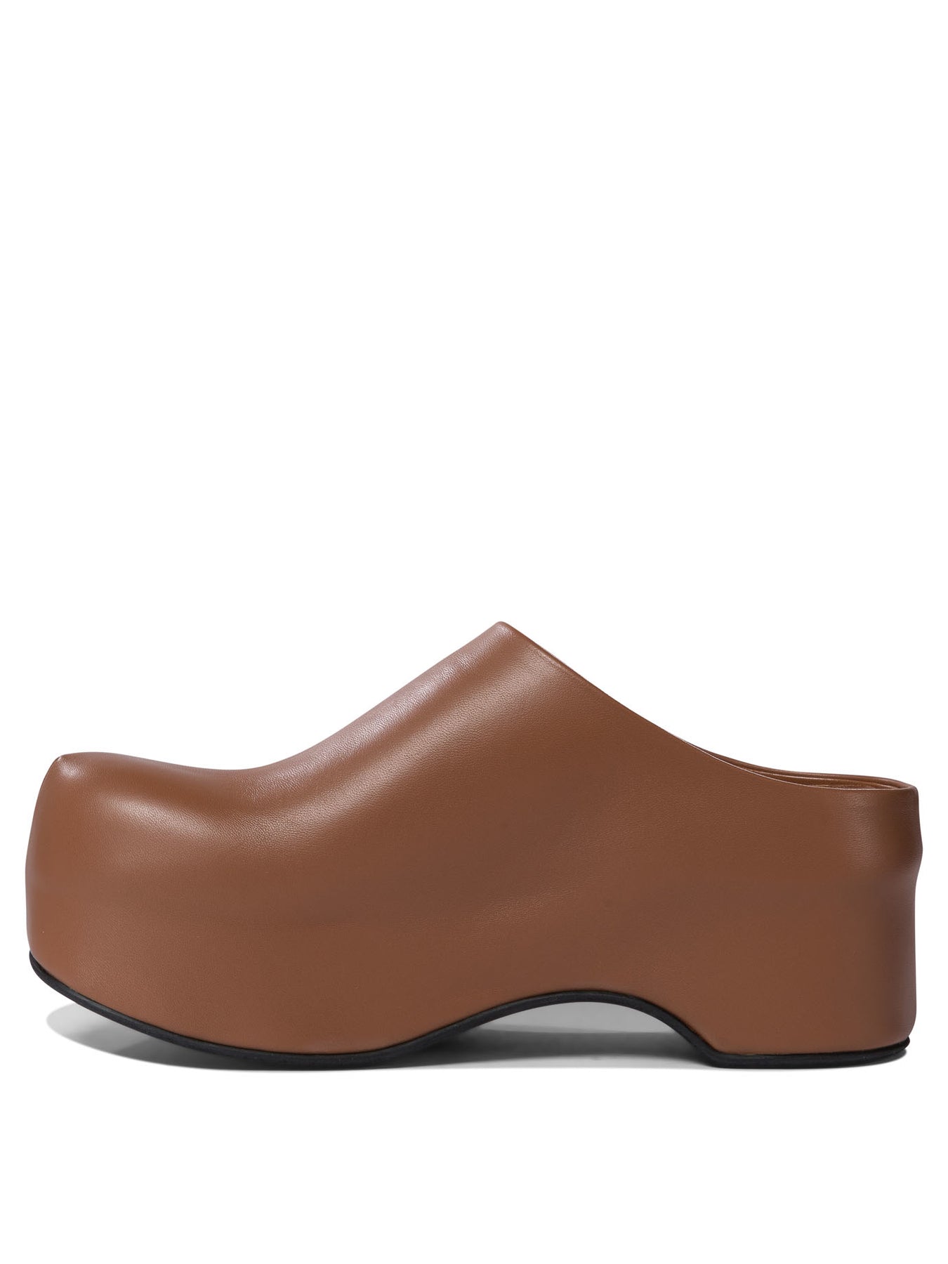 These "Chunky" sabots from Marni stand out for their design that blends boldness and sophistication, ideal for those seeking a contemporary touch in their wardrobe. The chunky clog silhouette accentuates the visual effect, making the sabot a distinctive and versatile element for a variety of occasions. The clean lines and skillful use of materials denote a unique style designed for a woman who appreciates the combination of comfort and modernity. || - Chunky clog with light wood sole - Lining in elegant nappa leather - Marni lettering engraved on the edge - Leather insole - Grooved rubber sole