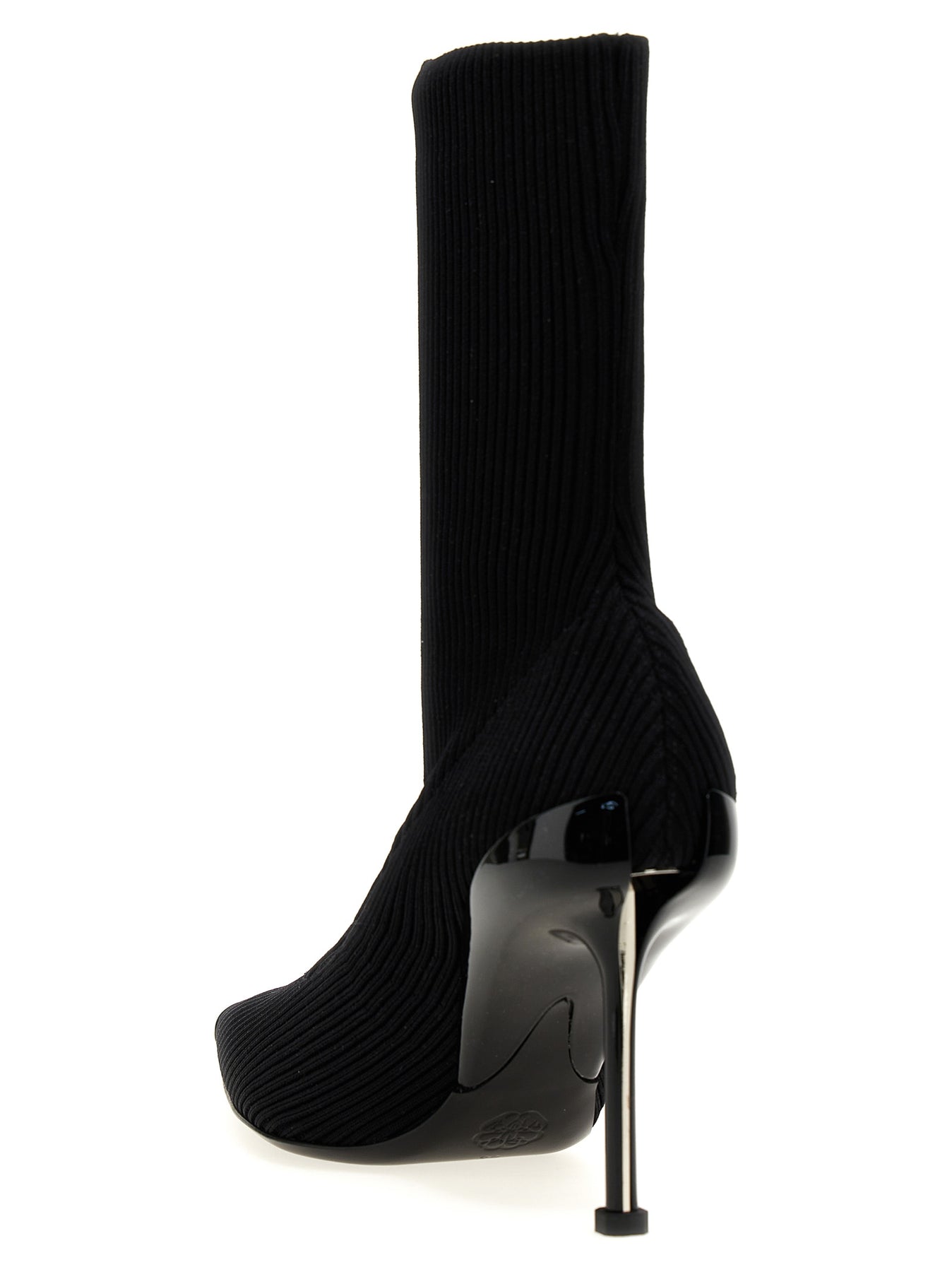 'Slash' ribbed knit ankle boots with silver metal punk-style toe, tone-on-tone lacquered heels with cut-out and a silver soul.