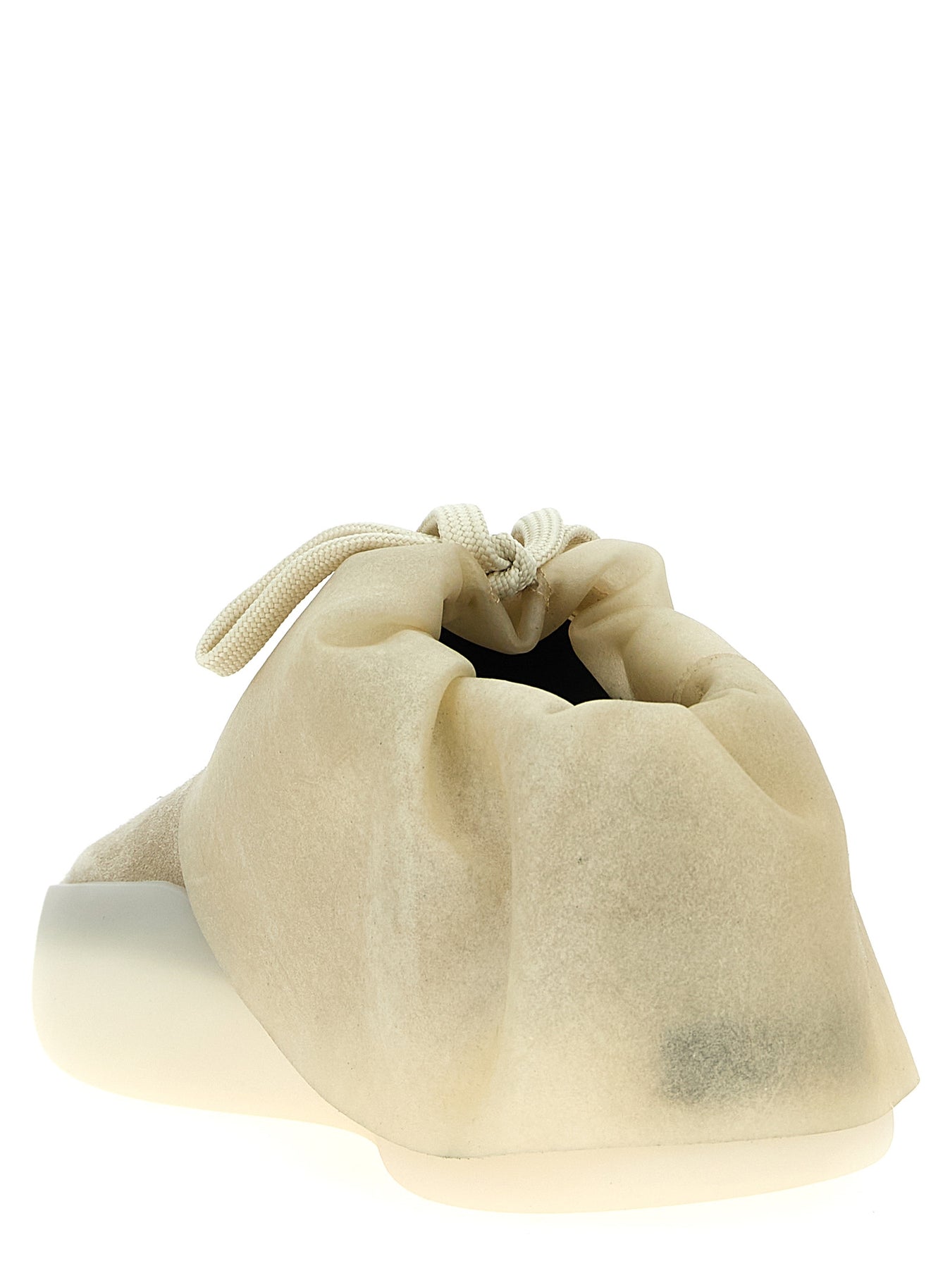'Moc Runner' suede sneakers with wide inverted silicone collar, lace-up closure, rubber sole.