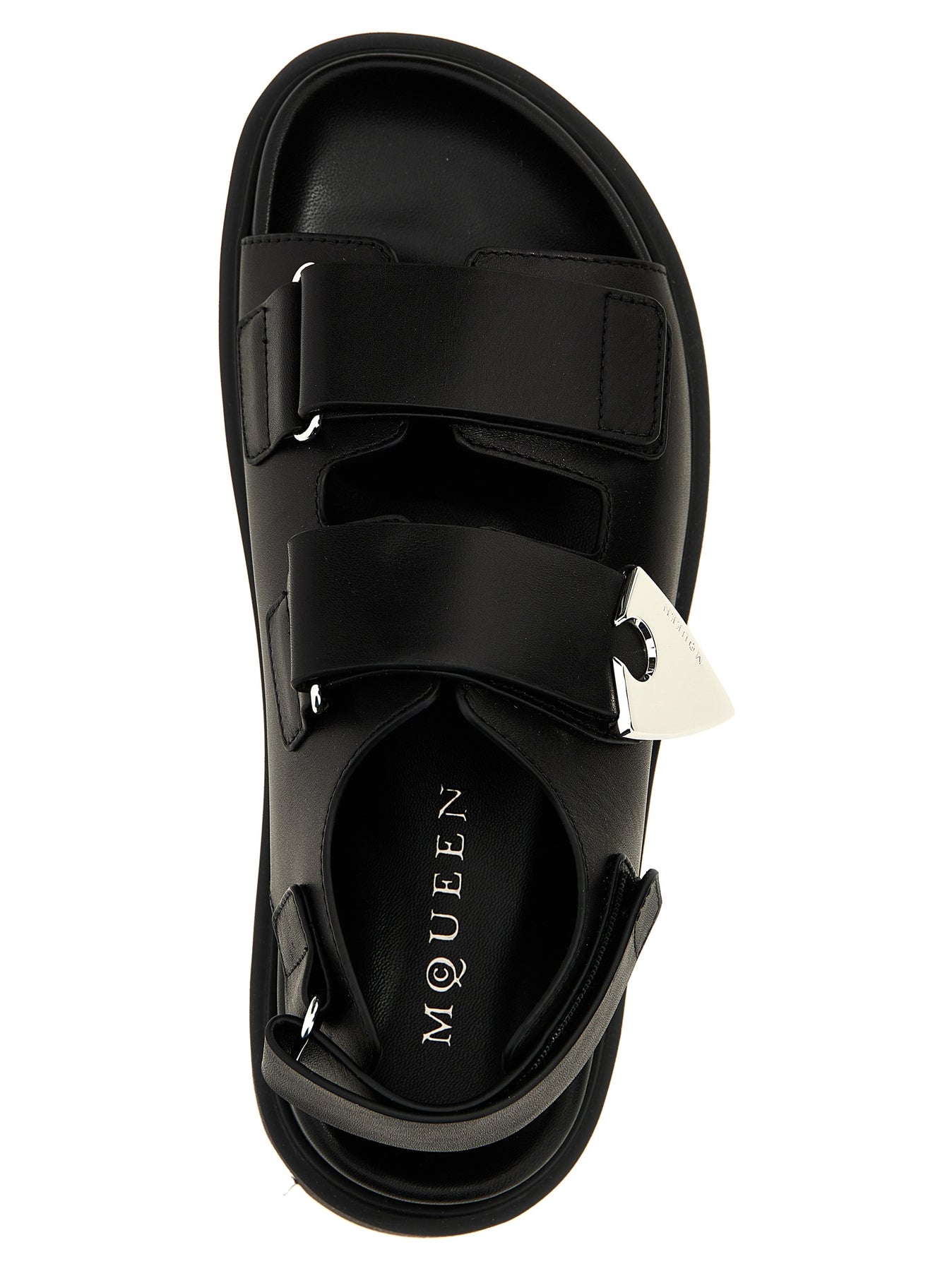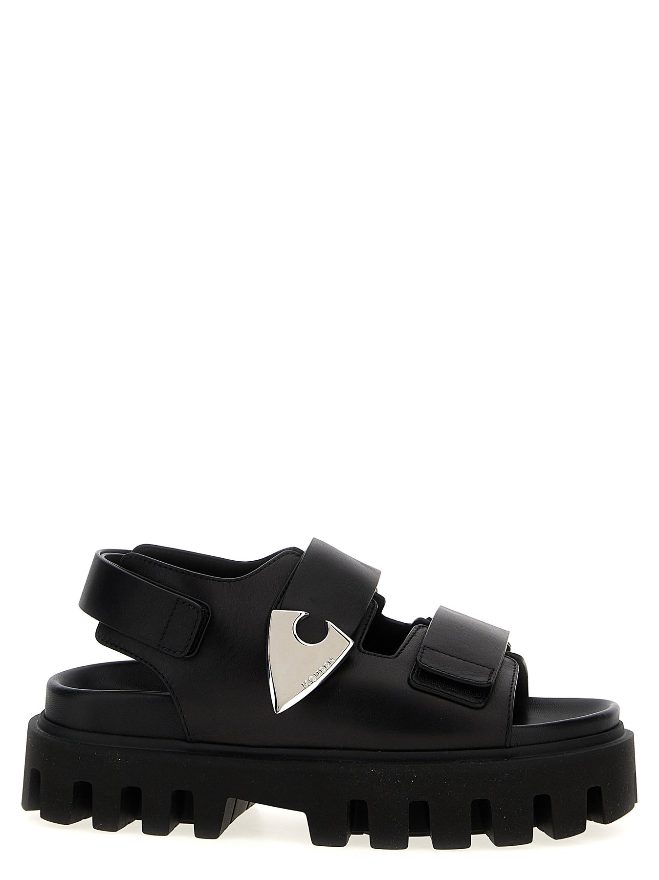 'Parachute' leather sandals with triple adjustable strap with Velcro, metal detail with engraved logo, thick notched sole.