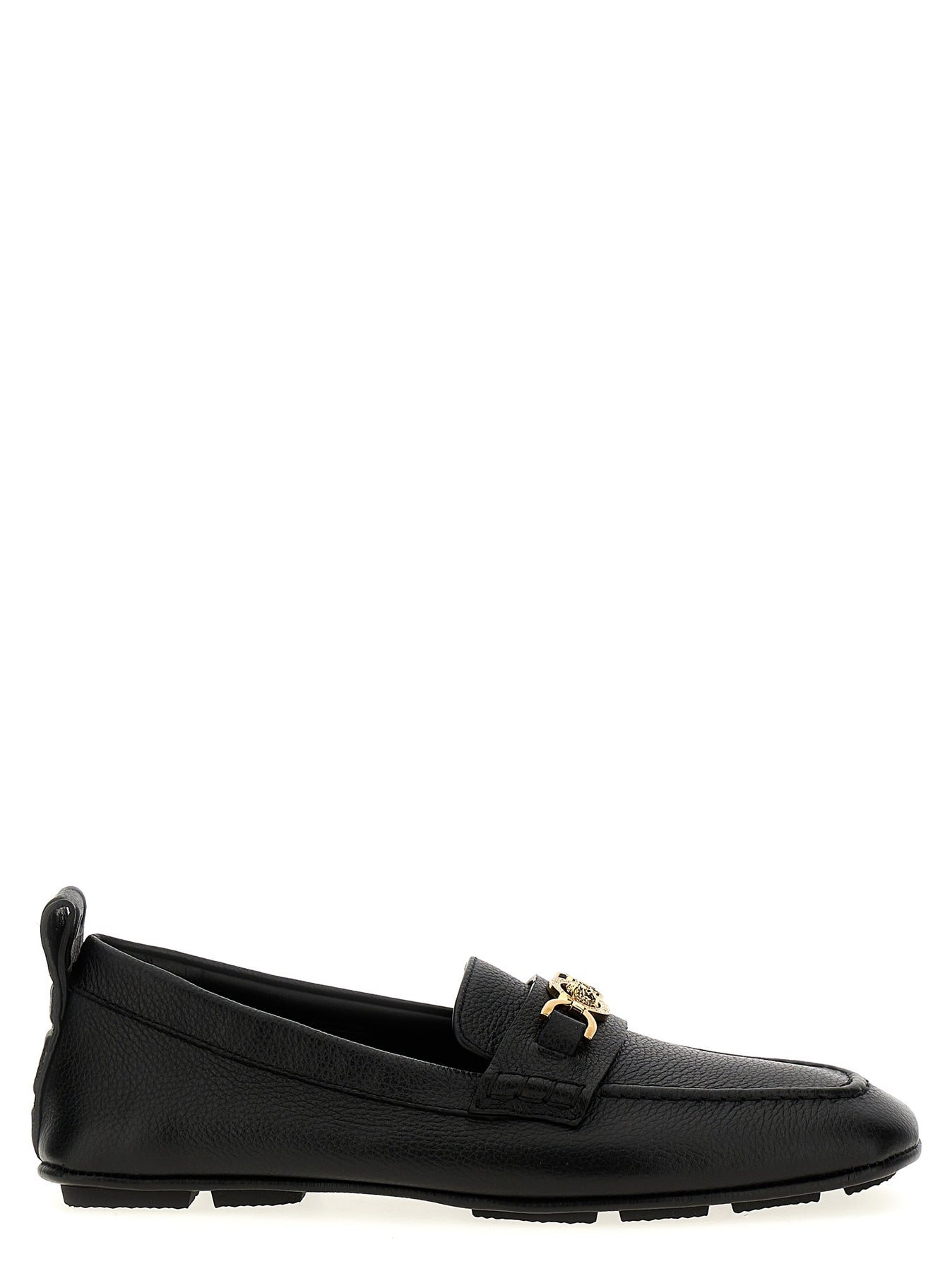 'Villa Driver' leather loafers with front metal 'Medusa 95' logo, rubber sole.